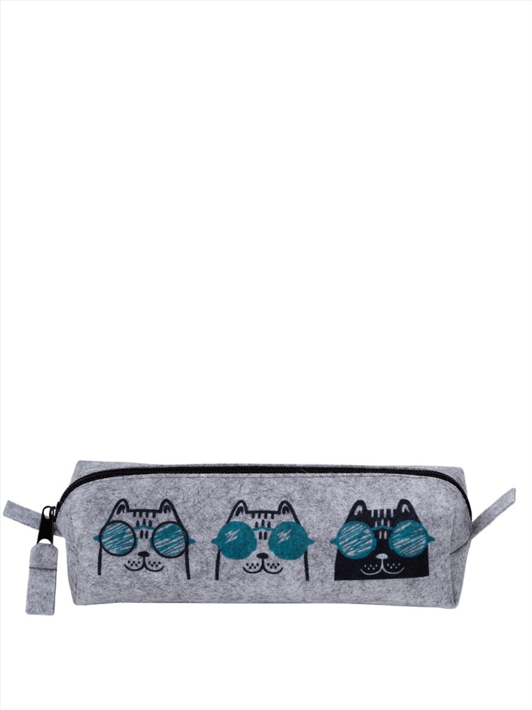 Выполнен из экологичного износостойкого фетра и украшен оригинальным принтом в виде кота и его подружек-кошек.