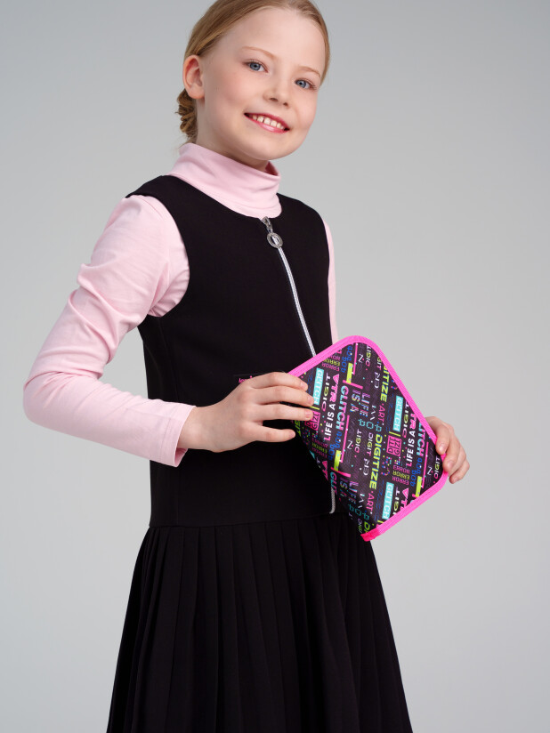 Текстильный пенал 20,5*13,5*4 см с наполнением: цветные карандаши с прочным грифелем 10 шт.; простые карандаши 2 шт.; фломастеры 10 шт.; шариковая ручка 1 шт.; линейка 1 шт.; ластик 1 шт.; точилка 1 шт. 1 отделение на молнии.