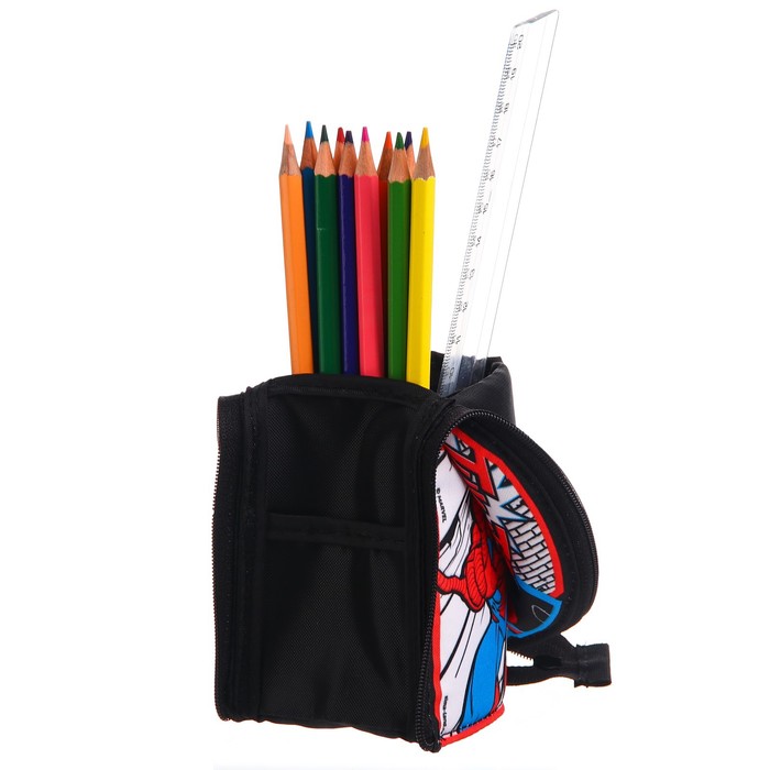 Производитель: MARVEL; Габариты: 20 x 9 x 4; Доставка: Платная; Страна: Китай; В боксе: 24 шт; Состав: Металл, пластик, полиэстер; Материалы: металл, пластик, полиэстер; Фасовка: по 1 шт; Индивидуальная упаковка: Пакет; Сертификат: ЕАС; Набор: Нет; Цвет: Чёрный; Для кого: Для мальчика; Рисунок: Да; Материал: Текстиль; Количество отделений: 1 отделение; Особенности: Тубус, Подставка; С наполнением: Нет; Эффекты: Без особенностей; Фиксированная цена: Да