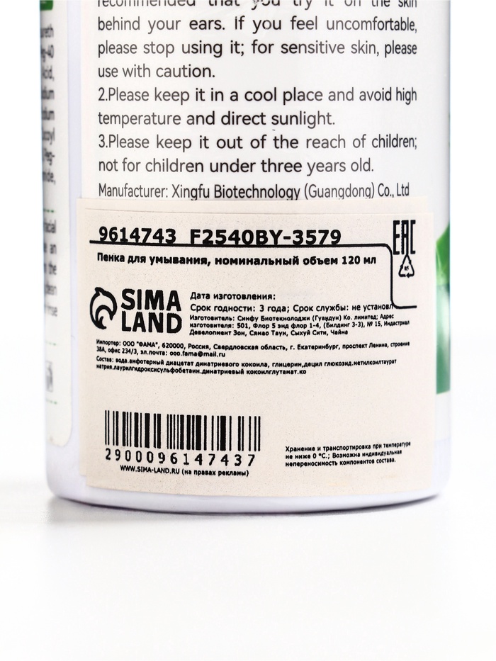 Производитель: SADOER; Габариты: 6 x 5 x 21; Страна: Китай; В боксе: 72 шт; Состав: См. на упаковке; Материалы: см. на упаковке; Фасовка: по 1 шт; Индивидуальная упаковка: Без упаковки; Сертификат: ЕАС; Темпер. ограничение НЕ НИЖЕ ℃: 0; Тип кожи: Для всех типов Нежная очищающая формула для снятия макияжа с аминокислотами, пенка нежная, насыщенная и плотная, мягко удаляет излишки жира, грязи и остатки макияжа с кожи, восполняет влагу кожи, увлажняет ее и доставляет удовольствие от очищения,оставляя кожу увлажненной и чистой,освежающей и чистой. Состав: вода.амфотерный диацетат динатриевого кокоила, глицерин,децил глюкозид.метилкоилтаурат натрия.лаурилгидроксисульфобетаин.динатриевый кокоилглутамат.кокосовый орех или ацииглутамат натрия.Экстракт листьев алоэ барбадосского.хлорфенезин.метилпарабен, лимонная кислота,бутиленгликоль,динатриевый ЭДТА,аллантоин,ароматизатор. Способ применения: Слегка надавите на ёмкость сверху, чтобы пена появилась на массажной щетке. Проведите щеточкой круговыми движениями по коже лица, начиная от центральной части к внешней, так чтобы пена полностью покрывала кожу. Массируйте кожу с пенкой 2-5 минут. Затем смойте пену с лица чистой водой. После применения промойте водой массажную щеточку для подготовки к следующему использованию.