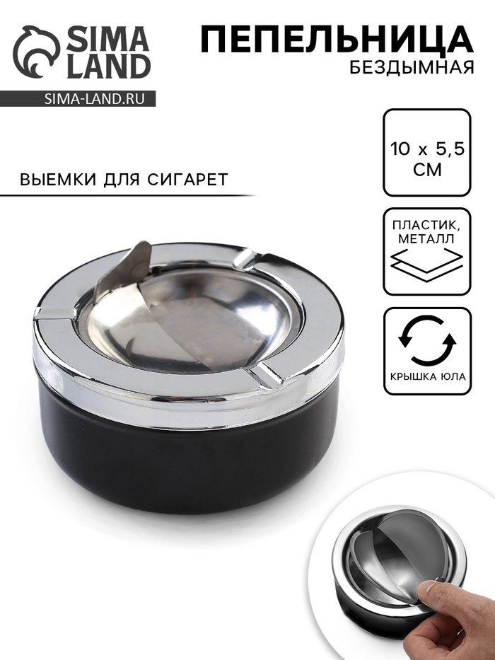 Производитель: Сима-ленд; Габариты: 11,5 x 11,5 x 6; Страна: Китай; В боксе: 100 шт; Состав: Металл, пластик; Материалы: металл, пластик; Фасовка: по 1 шт; Индивидуальная упаковка: Картонная коробка; Габариты товара: 10,5 см × 10,5 см × 5 см; Сертификат: Не подлежит сертификации; Цвет: Чёрный; Тематика: Однотонная; Материал: Металл, Пластик; Фиксированная цена: Да Пепельница — это не только важный с практической точки зрения атрибут курящего человека, но ещё и модный аксессуар. Кроме того, она нередко становится одним из декоративных элементов интерьера. Пепельница порадует своего обладателя оригинальным дизайном, качественным материалом, детализированным исполнением.