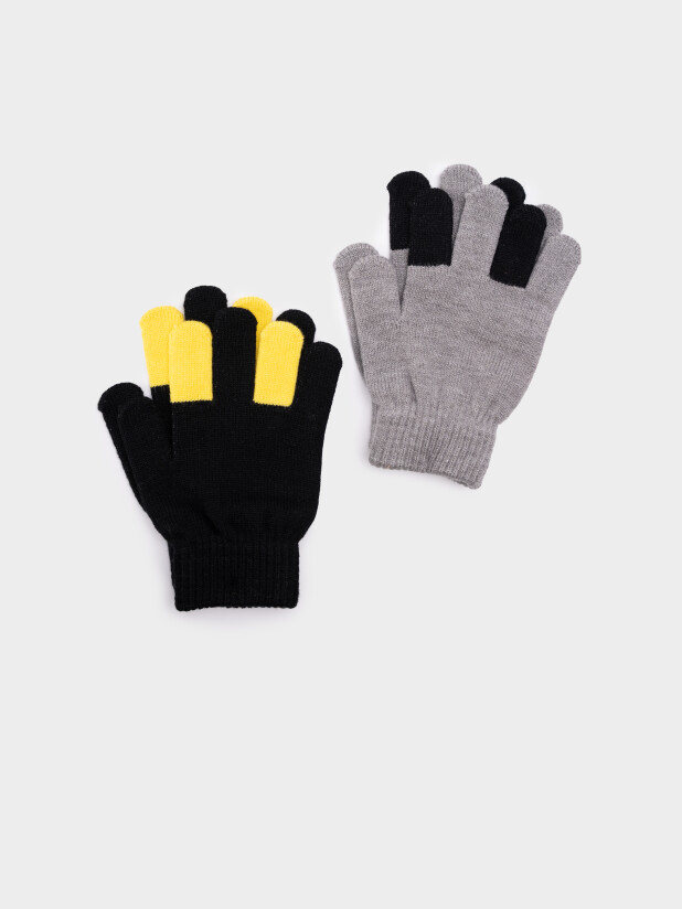 Набор детских перчаток для мальчика. Перчатки из вязаного трикотажа. 2 пары в комплекте. Пряжа с высоким содержанием хлопка: теплая, гипоаллергенная. Вязаная резинкой манжета.