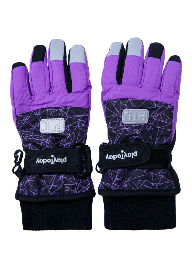 Зимние перчатки с мембраной. Утеплитель – синтепон. Мягкая ладошка из влагостойкого полиуретана. Регулируемая застёжка с липучкой по запястью. Застежка для скрепления пары между собой. Эластичный манжет. Светоотражающие элементы.