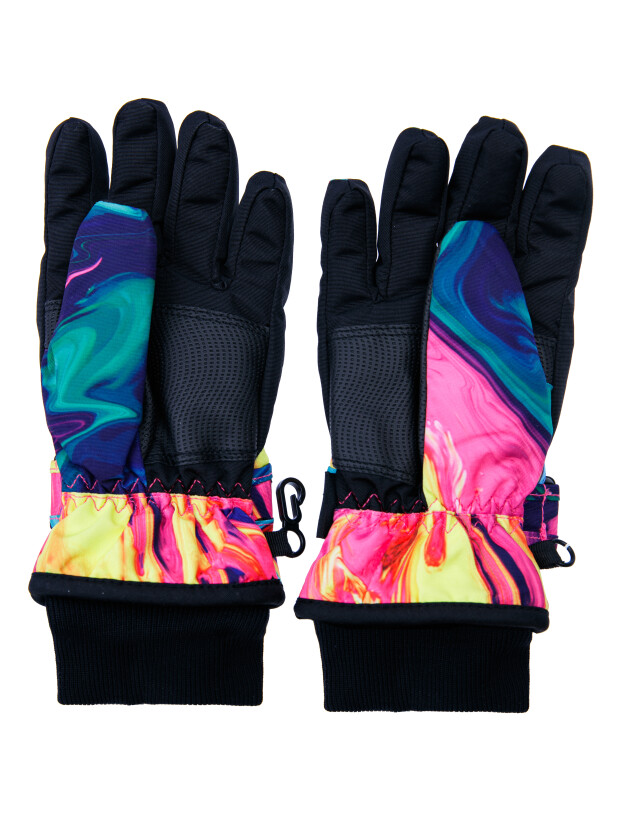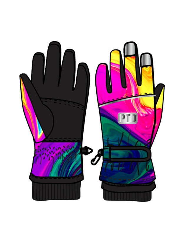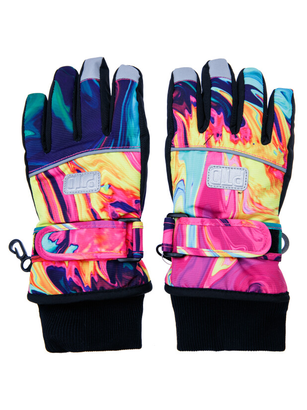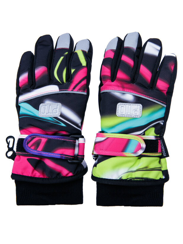 Зимние перчатки с мембраной. Утеплитель – синтепон. Мягкая ладошка из влагостойкого полиуретана. Регулируемая застёжка с липучкой по запястью. Застежка для скрепления пары между собой. Эластичный манжет. Светоотражающие элементы.