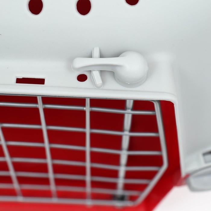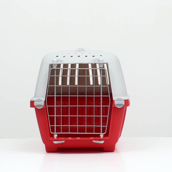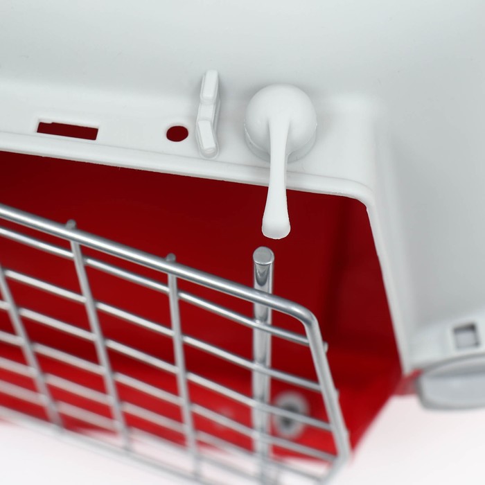 Металлическая дверца имеет удобные замки, расположенные с двух сторон, что обеспечивает надежное закрепление и предотвращает возможные побеги животного во время перевозки.