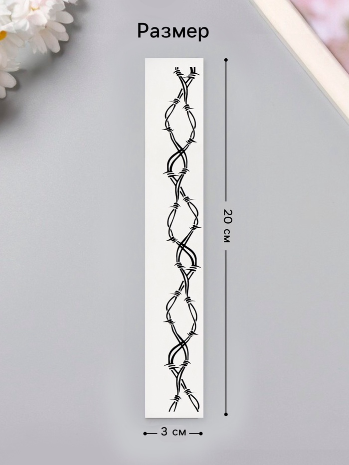 Производитель: Арт Узор; Габариты: 20,5 x 3,5 x 0,1; Страна: Китай; В боксе: 1000 шт; Состав: Пластик; Материалы: пластик; Фасовка: по 1 шт; Индивидуальная упаковка: Пакет; Габариты товара: 1,6 см × 20 см; Сертификат: Не подлежит сертификации; Набор: Нет; Цвет: Чёрный; Для кого: Унисекс, Для мужчины, Для женщины, Для мальчика; Тематика: Линии, Орнамент; Вид упаковки: Пакет; Тематика праздника: Универсальная тематика, Хэллоуин; Адресат: Без адресата; Материал: Пластик; Вид наклейки: Фигурная, Татуировка, Пластиковая; Вид: Чёрные; Место приклеивания: Запястье; Фиксированная цена: Да