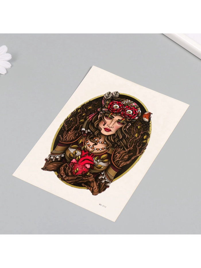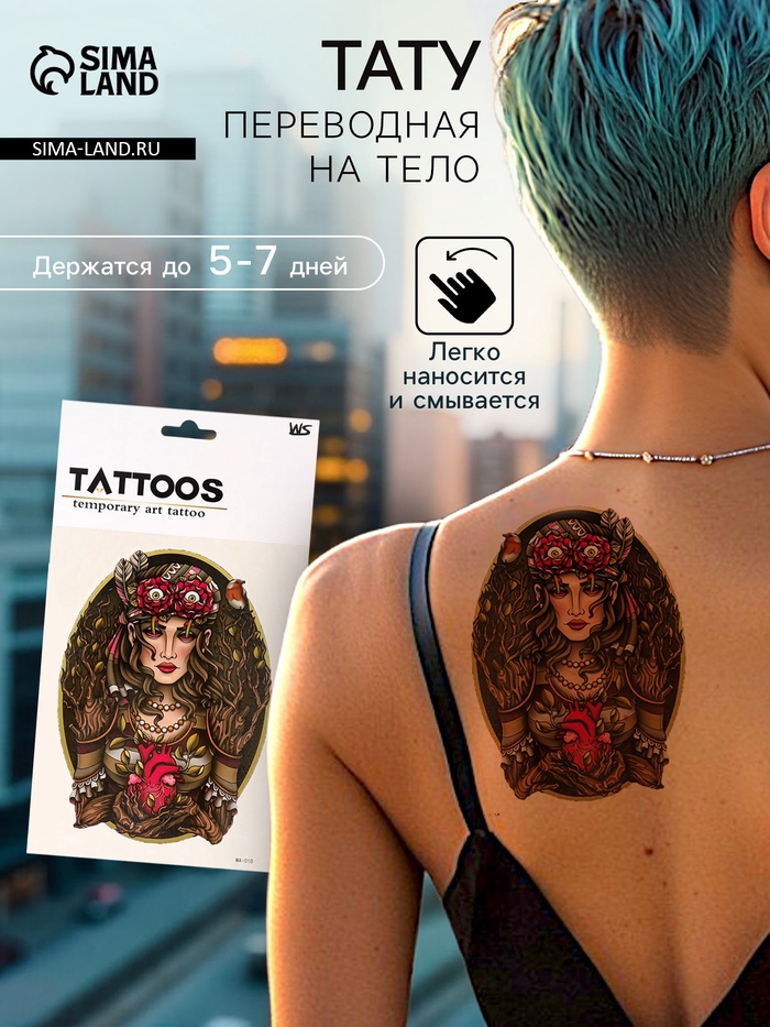 Татуировка легко наносится на кожу благодаря удобной переводной технологии, не требуя специальных навыков. Она универсальна в применении и подходит для различных случаев — от тематических мероприятий до повседневного самовыражения. Благодаря своей универсальной тематике, она станет прекрасным дополнением как для летних фестивалей, так и для фотосессий на природе.