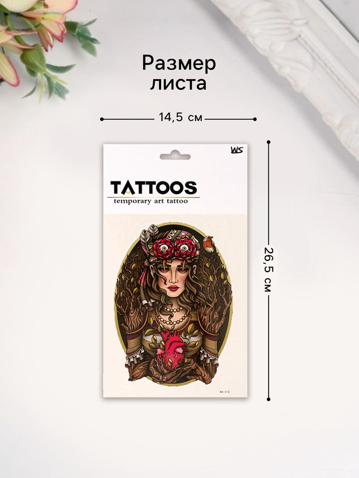 Эта переводная татуировка — это не просто украшение, а способ выразить свою индивидуальность и добавить в свой образ элемент необычности. Она поможет создать атмосферу гармонии и стиля, напоминая о важности связи с природой.