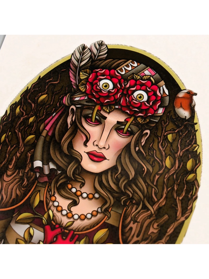 Представляем яркую переводную татуировку, которая станет идеальным способом выразить свою связь с природой и добавить в образ нотку загадочности. Её дизайн вдохновлён образом «Сердца леса» — сочетанием растительного орнамента и человеческих силуэтов, что создаёт гармонию между человеком и природой. Цветное исполнение подчёркивает детали и создаёт ощущение живой энергии, привлекая внимание окружающих. Размер 26.1×14.6 см позволяет создать масштабный рисунок, который станет настоящим акцентом вашего внешнего вида.