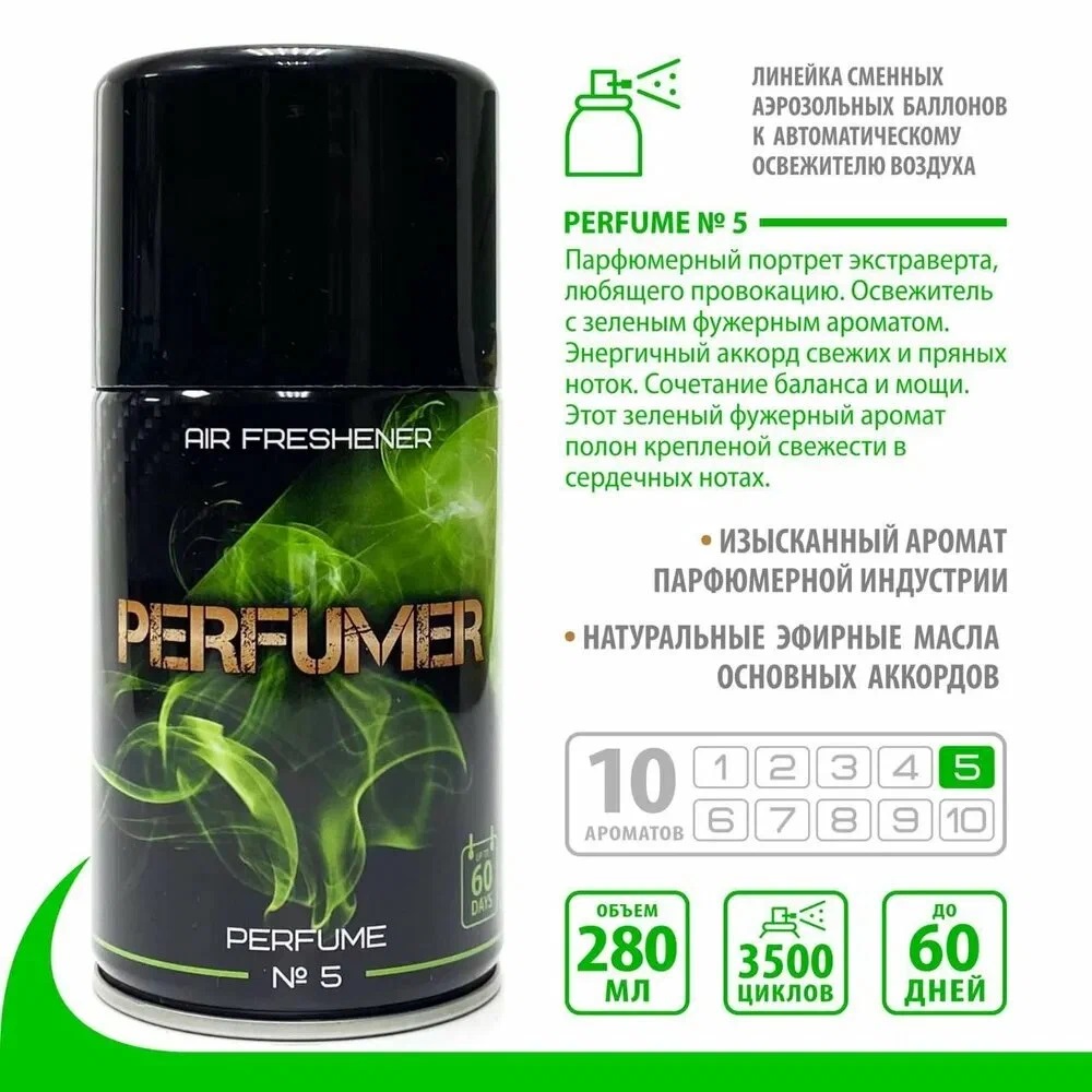 PERFUMER Парфюмированный освежитель воздуха №5 на основе эфирных масел сменный баллон 280мл (подходит под AirWick)