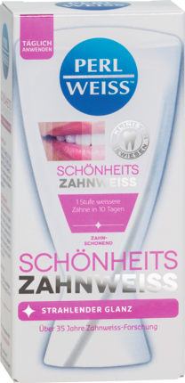 Die Zahnpasta Perlweiss Schönheits-Zahnweiß verhilft bei täglicher Anwendung bereits in zehn Tagen zu Zähnen, die eine Stufe weißer als zuvor sind und einen strahlenden Glanz haben. Die Zahnpasta ist dabei schonend zu den Zähnen.