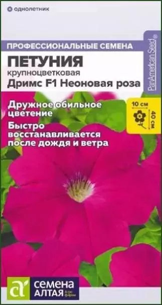 Гибридная крупноцветковая петуния, отличающаяся хорошим иммунитетом, выровненностью габитуса, насыщенностью окрасок и дружным обильным цветением. Быстро восстанавливается после сильного ветра и дождя. Растение хорошо ветвится. Цветки крупные, насыщенного розового цвета с неоново-голубым оттенком и светлым «глазком» в центре. Высота растения: 25-40 см Диаметр цветка: 8-10 см.