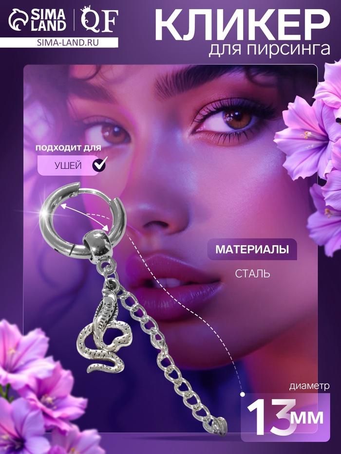 [Картинка122]Этот уникальный пирсинг в ухо сочетает в себе изящность и оригинальность, превращая классический дизайн кольца в настоящее произведение искусства. Змея с цепью диаметром 13 мм выполнена из высококачественной стали с серебристым покрытием, что обеспечивает долговечность и стильный внешний вид. Такой аксессуар станет ярким акцентом в вашем образе, подчеркивая индивидуальность и вкус.