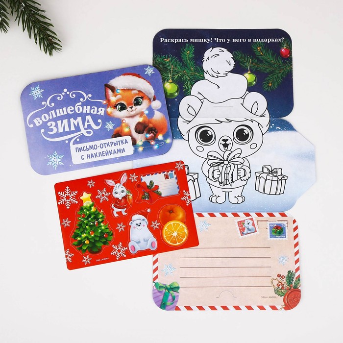 Письмо Деду Морозу открытка с наклейками «Волшебная зима»