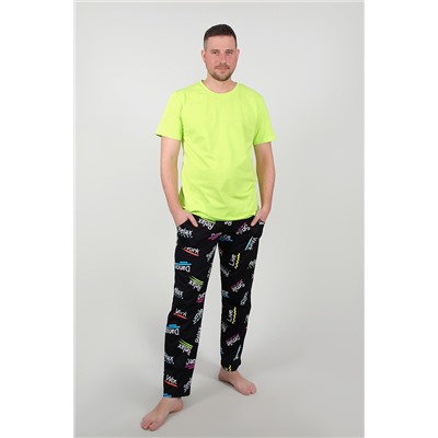 Пижама мужская с брюками. Данная модель выполнена из трикотажного полотна кулирка (хлопок 100%). Отличная модель для сна и отдыха.