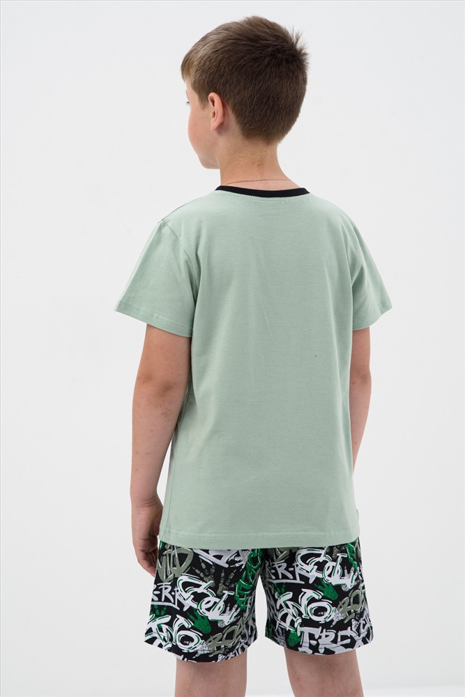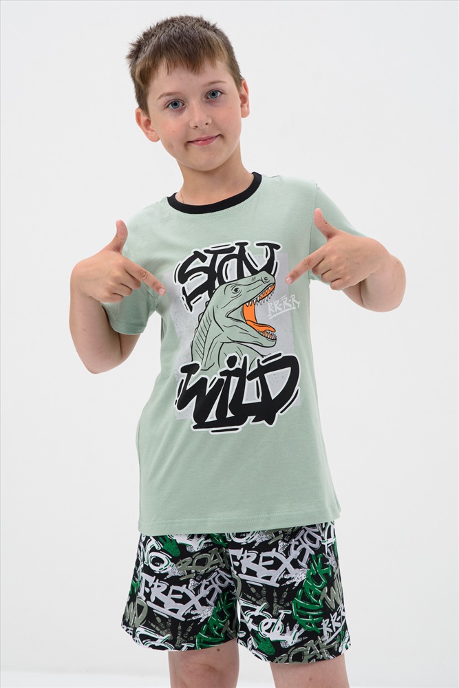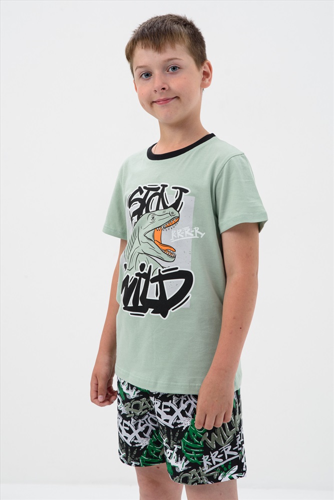 Состав: 100% хлопок Модель: Пижама Дикарь детская короткий рукав с шортами Тип товара: пижама с шортами Материал: кулирка | кулирка Бренд: Мурлыка Карман: без карманов Назначение: для дома Особенности: на резинке Отделка: с печатью Рисунок: хищники | надпись | зверюшки Рукав: короткий рукав Сезонность: лето | осень | весна | зима Силуэт: прямой | свободный Стиль: домашний Воротник: без воротника Застежка: без застежки Пижама для мальчика, состоящая из футболки - однотонное полотно с нанесением печати и шорт - полотно с рисунком, выполнена из мягкой, приятной к телу трикотажной ткани средней плотности, 100% хлопок. Пижамка согревает, даже если ребенок ворочается и раскрывается во сне, а также создает ощущение уюта, ребенок спит глубже и реже просыпается. Также стильная пижама для подростков создает хорошее настроение. Можно носить как домашний костюм или использовать как летнюю пижаму, для дома или в садике. Пижамный костюм без карманов для полного комфорта во сне и застежек, свободного полуприлегающего силуэта, для комфортного сна ребенка. Пижамные шорты с удобной посадкой и нетугой резинкой. Яркий и модный молодежный пижамный стиль для детей и подростков, пижама для мальчика подростка. Таблица размеров и весафутболка