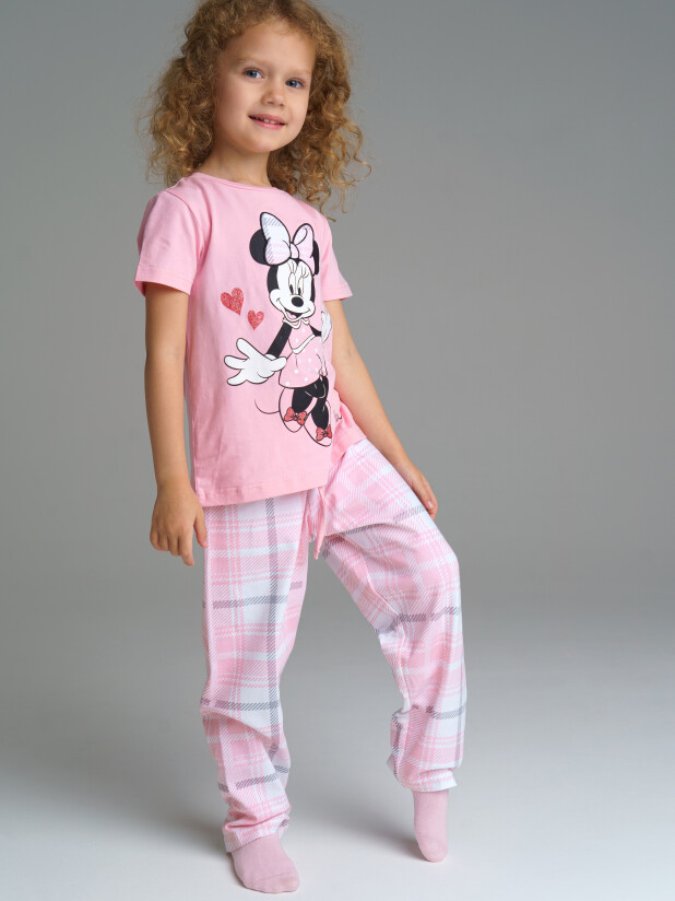 Пижама с персонажем Disney. Футболка, брюки. Высокое содержание хлопка 95%. Благодаря наличию эластана в составе ткани, изделие проще в уходе и держит форму. Брюки с резинкой по талии и шнурком.