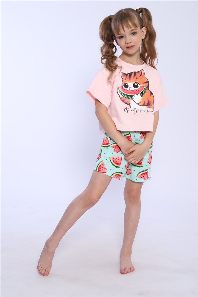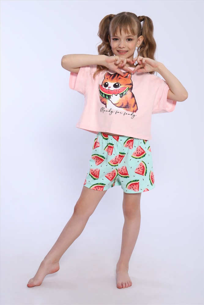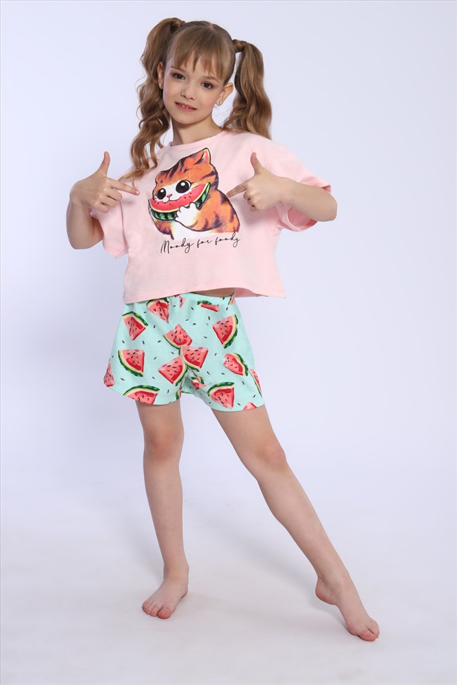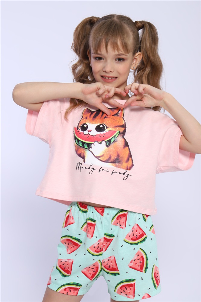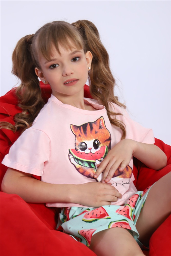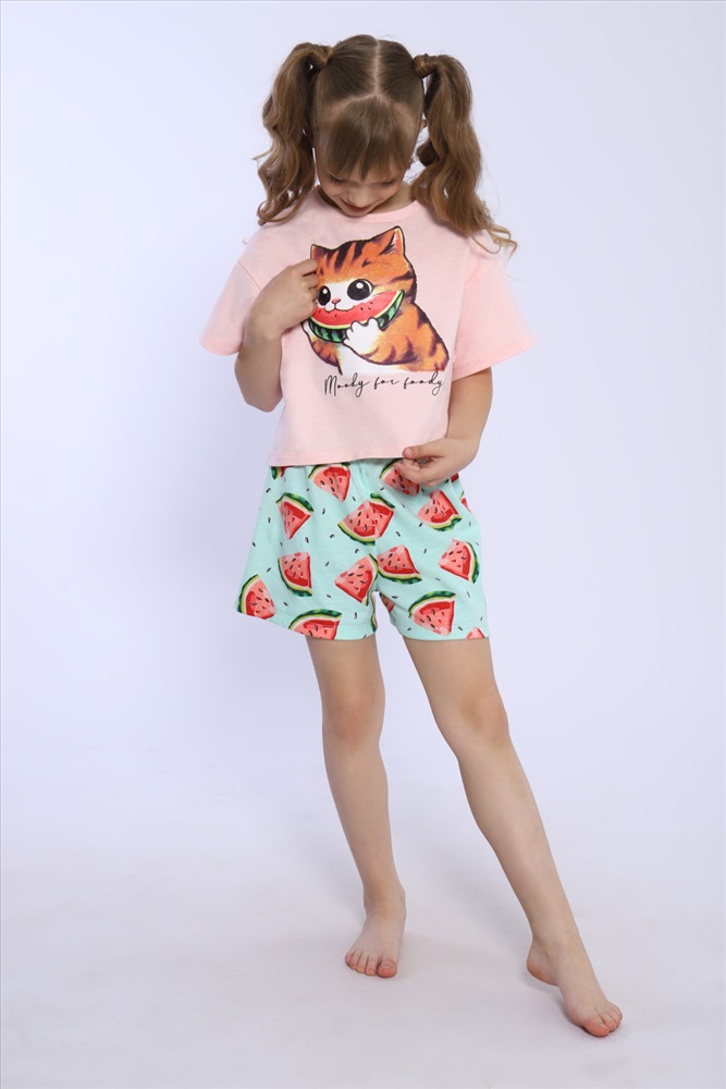 Состав: верх- 95% Хлопок, 5% эл; низ- 100% Хлопок Модель: Пижама для девочки Кот-арбуз арт ПД-019-067 Тип товара: пижама с шортами Материал: трикотаж стрейч | трикотаж стрейч Бренд: Jersey Lab Карман: без карманов Назначение: для дома Особенности: на резинке Отделка: с печатью Рисунок: фуд-принт | зверюшки Рукав: короткий рукав Сезонность: лето | осень | весна | зима Силуэт: прямой | свободный Стиль: домашний Воротник: без воротника Застежка: без застежки Комфортная пижама для девочки с оригинальным принтом. Пижама детская состоит из футболки и шорт. Дизайн ткани позволяет использовать пижаму не только для сна, но и как костюм для дома. Модель пижамы не сковывает движения ребенка во время сна. Покрой футболки свободный, шорты классические без карманов. Пижама выполнена из 100% гипоаллергенного хлопка, что позволяет коже ребенка дышать во время сна. Таблица размеров и весафутболка