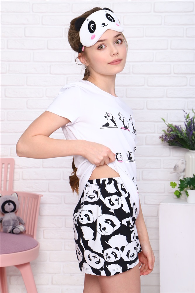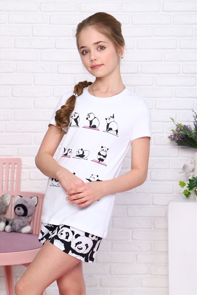 Состав: Футб-95%Хлопок, 5% ПУ, Шорты-100% Хлопок Модель: Пижама для девочки Панды Арт.ПД-009-052 Тип товара: пижама с шортами Материал: кулирка | кулирка с лайкрой | кулирка | кулирка с лайкрой Бренд: Jersey Lab Назначение: для дома Особенности: на резинке Отделка: с печатью Рисунок: зверюшки Рукав: короткий рукав Сезонность: лето | осень | весна | зима Силуэт: прямой Стиль: домашний Комфортная пижама для девочки с ярким модным принтом Панда. Пижама детская состоит из футболки и шорт. Дизайн ткани позволяет использовать пижаму не только для сна, но и как костюм для дома. Материал очень мягкий и в то же время износостойкий, не скатывается и не вытягивается. Модель пижамы не сковывает движения ребенка во время сна. Покрой футболки свободный, укороченный, шорты классические без карманов. Пижама выполнена из 100% гипоаллергенного хлопка, что позволяет коже ребенка дышать во время сна. Таблица размеров и весафутболка