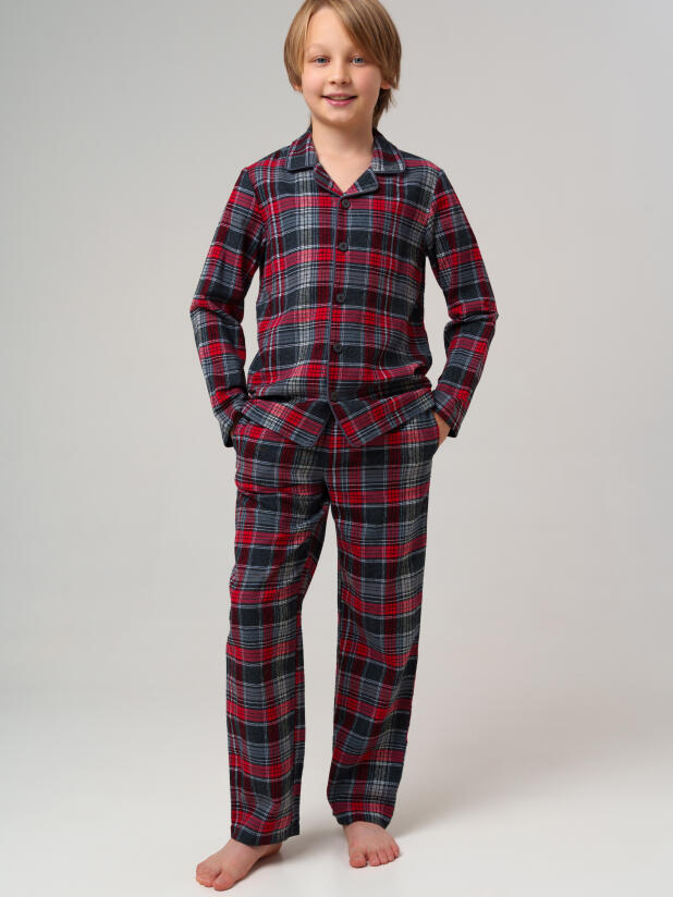 Стильная клетчатая фланелевая пижама для мальчиков от PlayToday — тепло, уют и современный дизайн для сна и дома.