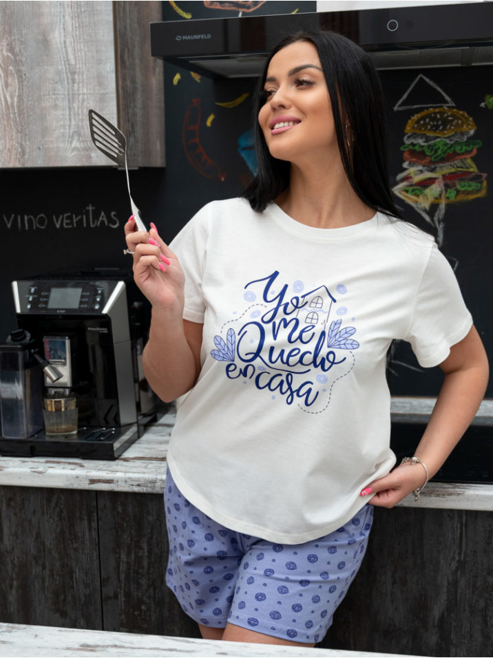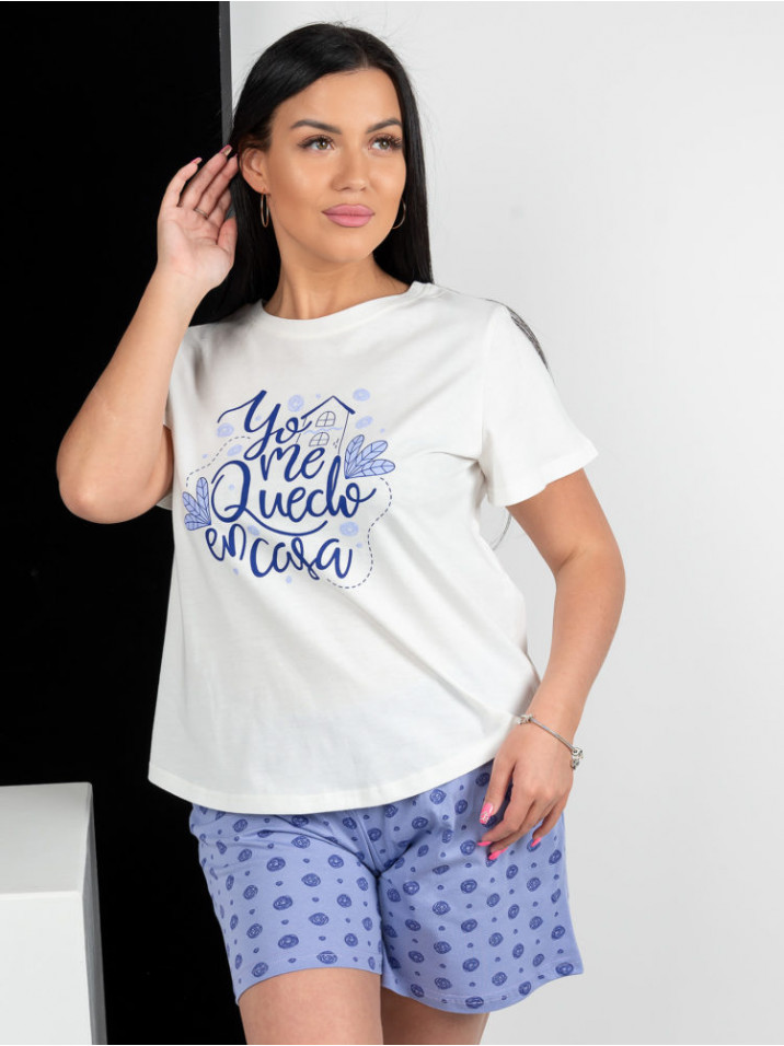 Пижама женская с шортами хлопок – практичный подарок на  день матери, день рождения, любой праздник и без повода маме, сестре, подруге, любимой, девушке, коллеге, который будет радовать каждый день. Наша домашняя пижама женская с шортами 100% хлопок, она так же красива как шелковая пижама или атласная пижама, но при этом в ней приятно спать и удобно носить каждый день как костюм домашний. Пижама футболка и шорты гораздо удобнее, чем пижама с рубашкой. Пижамные шорты  и футболка с принтом подойдут для пижамной вечеринки.