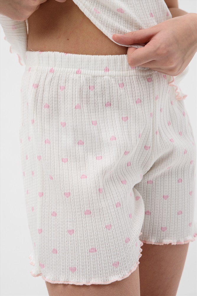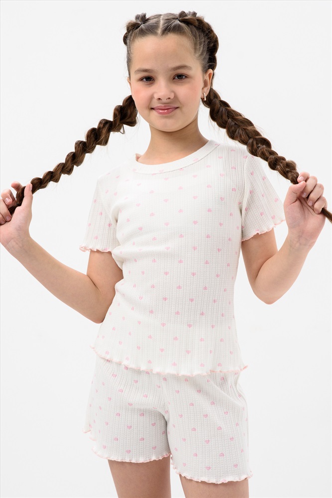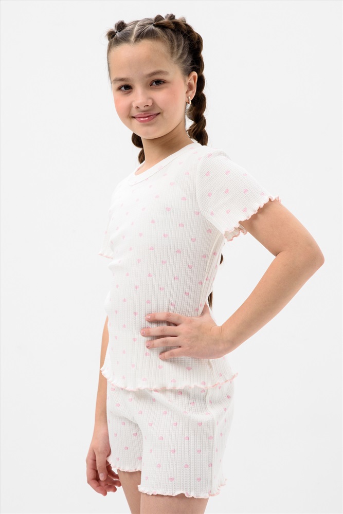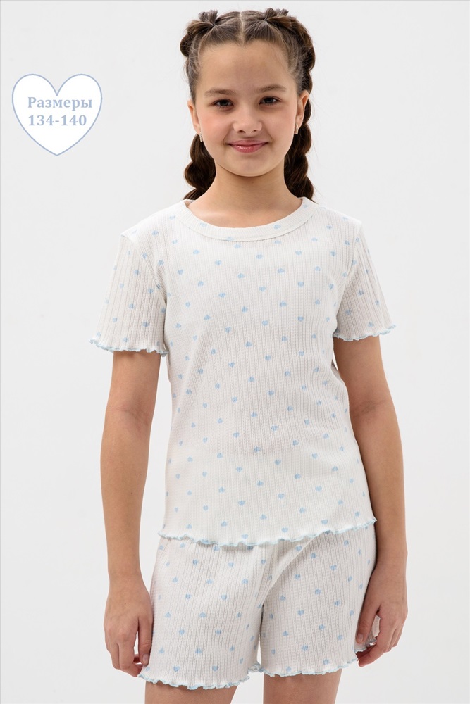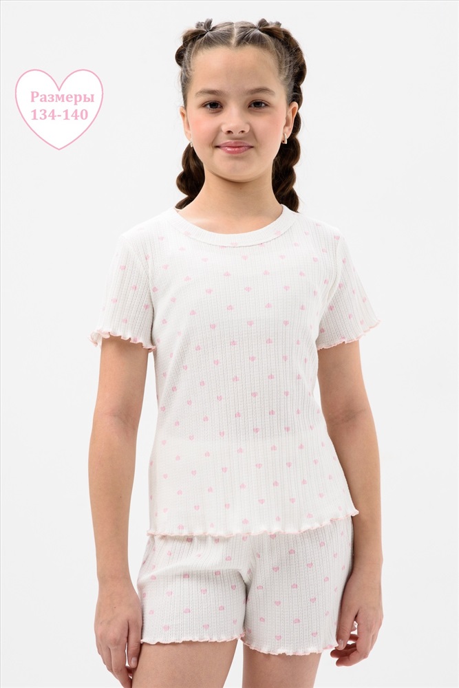 Состав: 100% хлопок Модель: Пижама МЕРЕЖКА короткий рукав с шортами для девочки подростка Тип товара: пижама с шортами Материал: лапша | лапша Бренд: Мурлыка Карман: без карманов Назначение: для дома Особенности: на резинке Отделка: с волнистым краем Рисунок: горошек | сердечки Рукав: короткий рукав Сезонность: лето | осень | весна | зима Силуэт: прямой | свободный Стиль: домашний Воротник: без воротника Застежка: без застежки Пижама для девочек младшего и старшего школьного возраста, из трикотажного полотна кулирка с рисунком. Пижама состоит из футболки и шорт. Футболка свободного, прямого силуэта, со спущенным плечом, с втачным рукавом, с обтачкой в горловине. Шорты прямого силуэта. Верхний срез шорт подогнут с резинкой. Нижний срез шорт, рукавов и футболки подогнуты. Таблица размеров и весафутболка