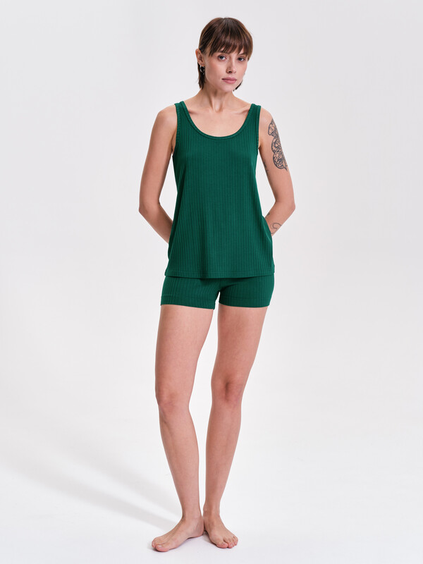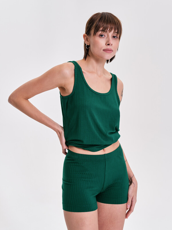 Домашний комплект женский с шортами и майкой из актуальной ткани в рубчик. Костюм домашний женский с майкой без рукавов – это удобная повседневная одежда для дома. Домашняя одежда всегда должна быть изысканной, создавать чувство уверенности и красоты. Шорты короткие, облегающие, мягкие и уютные, красиво подчеркивают фигуру. Шортики женские на комфортной резинке – она не давит и не перекручивается. Майка базовая – основа женского гардероба. Майка на широких бретелях с глубокими проймами приятно ощущается на теле и дарит комфорт. В составе ткани преобладает высококачественная вискоза – комплект мягкий и воздухопроницаемый. Эластан помогает изделию надолго сохранить первоначальную форму. Комплект женский домашний лаконичного дизайна, без принта, неприхотлив в уходе. В линейке представлены следующие размеры: XS (42), S (44), M (46), L (48). Женский пижамный костюм подходит как женщинам, так и девушкам, девочкам-подросткам. Модель представлена в актуальных цветах: голубом, сером, синем, жёлтом, а также в классическом чёрном. Домашний женский комплект идеален для комфортного сна, пижамной вечеринки. Удобная майка в бельевом стиле подходит для повседневного летнего гардероба, прогулок, отдыха. А также пижама хлопковая женская удобна для беременных и кормящих. Женский комплект из майки и шорт – чудесный подарок для мамы, сестры или подруги на любой праздник.