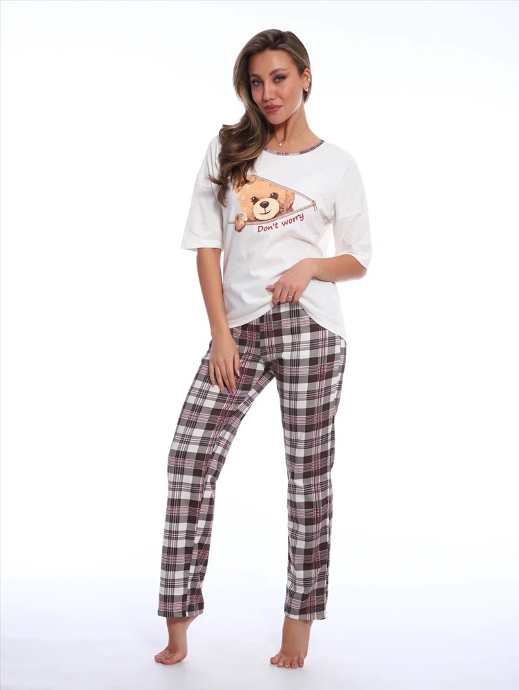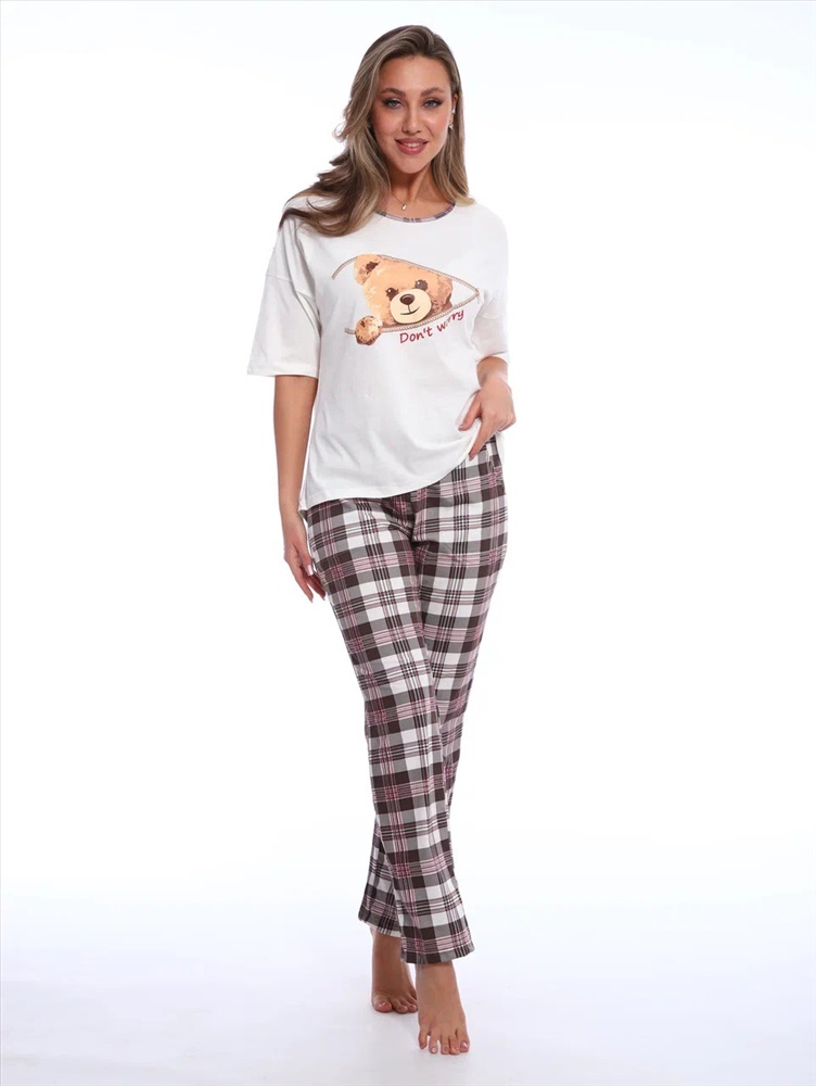 Модель: Пижама женская с удлиненной футболкой и брюками в клетку, Арт. 518