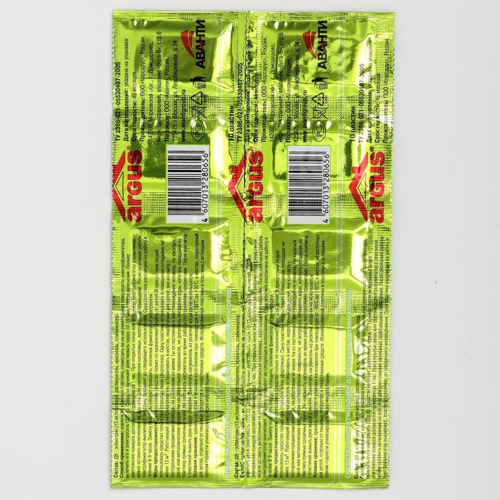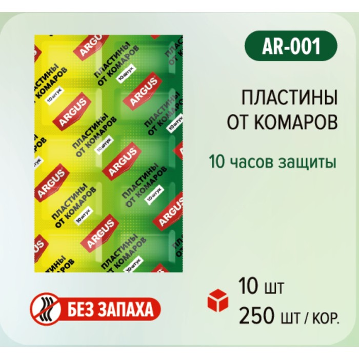 Производитель: ARGUS; Габариты: 0,3 x 11 x 18,5; Страна: Россия; В боксе: 250 набор; В наборе: 10 набор; Состав: См. на упаковке; Материалы: см. на упаковке; Фасовка: по 1 набор; Индивидуальная упаковка: Без упаковки; Габариты товара: 20 см × 11 см × 0,2 см; Сертификат: СТР; Назначение: От комаров; Тип средства: Инсектицид