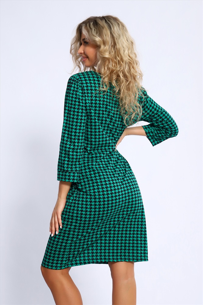 Состав: 100% хлопок Модель: Платье 13216 Тип товара: платье Материал: кулирка | кулирка Бренд: Натали Суслова Длина: средняя длина Карман: боковые Назначение: для офиса Отделка: с карманами Рисунок: гусиная лапка Рукав: рукав 3/4 Сезонность: лето | осень | весна | зима Силуэт: полуприлегающий Стиль: офисный | повседневный Воротник: без воротника Застежка: без застежки Платье полуприлегающего силуэта с боковыми карманами. Рукава длиной 3/4 с манжетами и на сборке по окату. Таблица размеров и веса