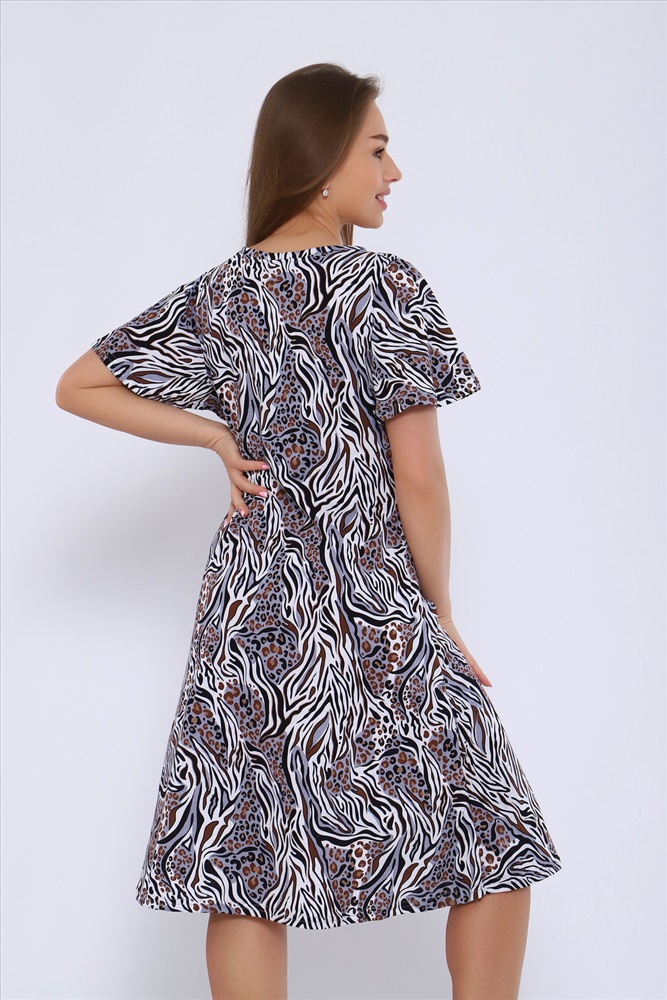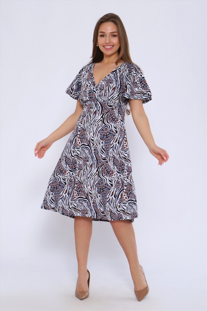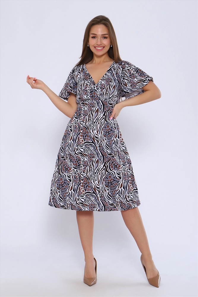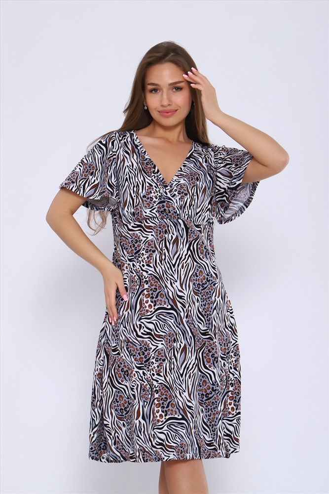 Состав: 100% Хлопок Модель: Платье 13312 Тип товара: платье Материал: кулирка | кулирка Бренд: Натали Суслова Длина: средняя длина Назначение: для пляжа Рисунок: анималистичный | узоры Рукав: короткий рукав Сезонность: лето | осень | весна | зима Силуэт: расклешенный | свободный Стиль: пляжный | повседневный Воротник: без воротника Застежка: без застежки | на запах Платье полуприлегающего силуэта с короткими рукавами - крылышками. Лиф запашной со сборкой. Таблица размеров и веса