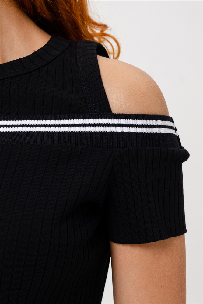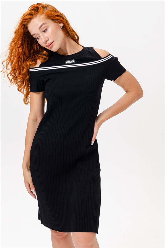 Застежка: без застежки Женское платье из лапши полуприлегающего силуэта. Кокетливые вырезы для плеч делают платье особенным.