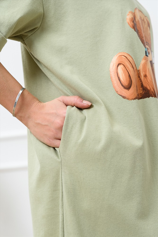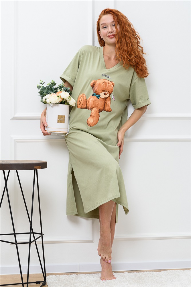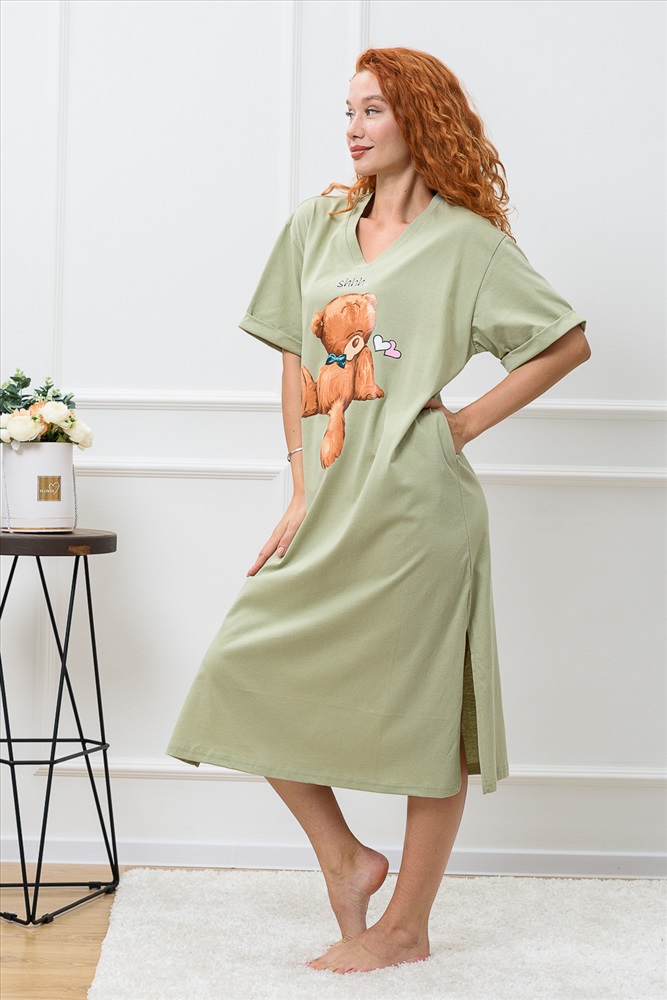 Состав: хлопок 100% Модель: Платье 8381 Тип товара: платье Материал: кулирка | кулирка Бренд: Натали Суслова Длина: длинный | средняя длина Карман: боковые Назначение: для дома Отделка: с карманами | с манжетами | с печатью Рисунок: крупный принт | зверюшки Рукав: короткий рукав Сезонность: лето | осень | весна | зима Силуэт: прямой | свободный Стиль: домашний Воротник: без воротника Застежка: без застежки Платье в стиле оверсайз. Прямое, свободное, с боковыми карманами, длиной до середины икры, с V-образной горловиной. Рукав короткий, с манжетом. В нижней части боковых швов обработаны разрезы. Горловина обработана обтачкой из основного полотна. Таблица размеров и веса