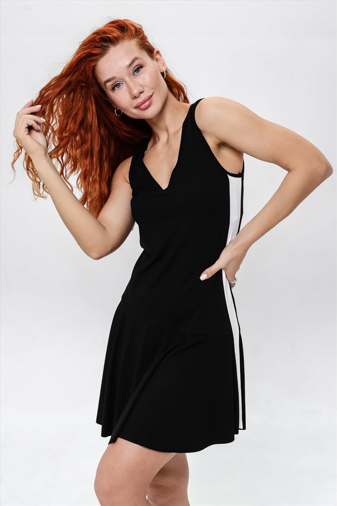 Состав: вискоза 92%, лайкра 8% Модель: Платье 8391 Тип товара: платье Материал: вискоза пенье | вискоза пенье Бренд: Натали Суслова Длина: короткий Карман: без карманов Отделка: с лампасами Рисунок: однотонные Рукав: без рукава Сезонность: лето | осень | весна | зима Силуэт: полуприлегающий Стиль: молодежный | повседневный Воротник: без воротника Застежка: без застежки Платье полуприлегающего силуэта, с V-образной горловиной, длиной выше колена, без рукавов, с асимметричным воланом в нижней части. Вдоль боковых швов расположены лампасы контрастного цвета. Проймы обработаны бейкой из основного полотна. Таблица размеров и веса