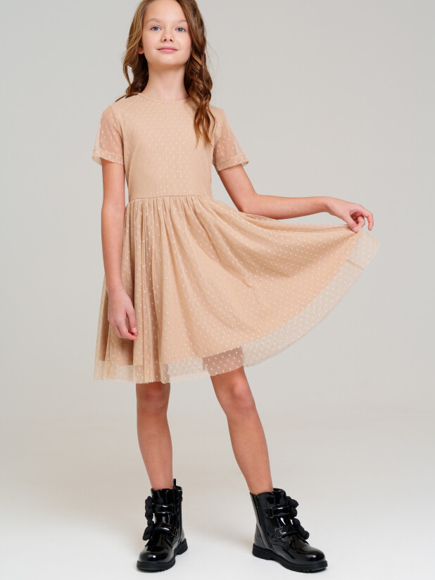 Платье для девочки подростка. Нарядное платье. Подкладка с высоким содержанием хлопка. Декор из сетки. Застежка на потайную молнию. Модель выполнена из качественного и приятного на ощупь трикотажа.