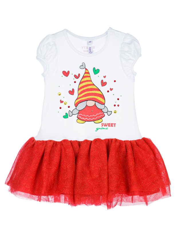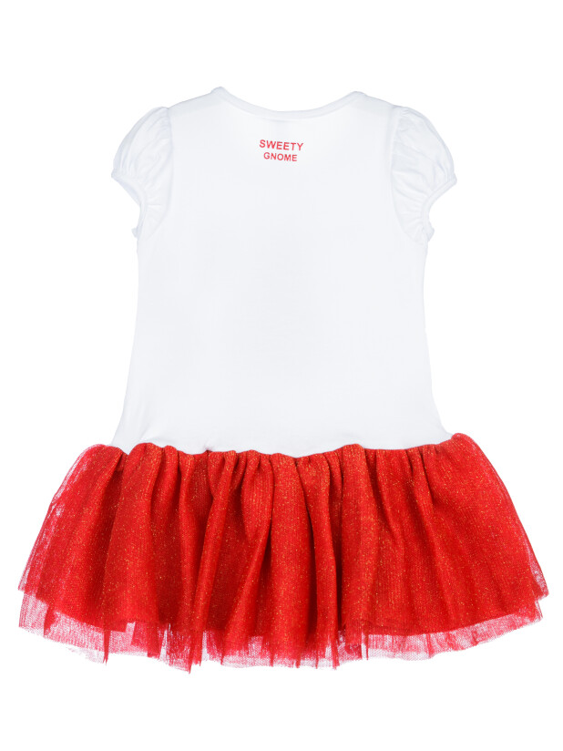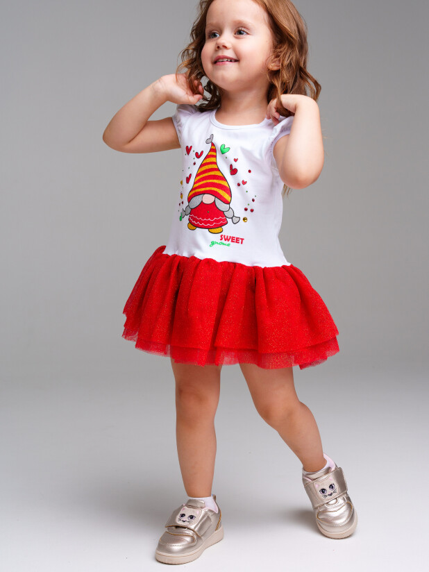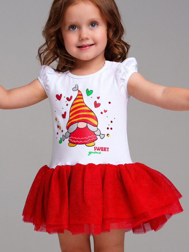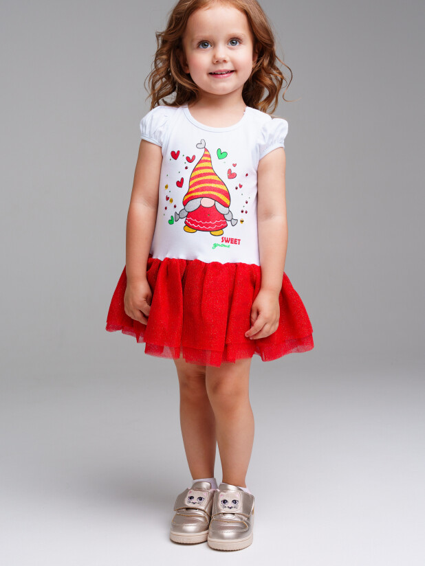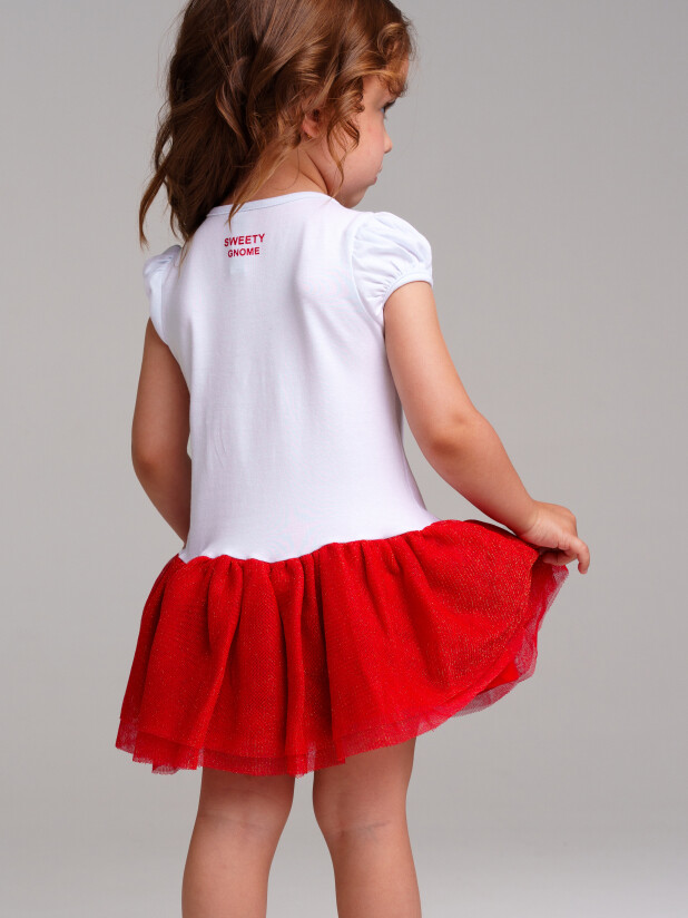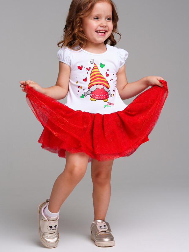 Платье трикотажное с юбкой из мягкой сетки. Верх платья из трикотажа с высоким содержанием хлопка 95%. Благодаря наличию 5% эластана в составе ткани изделие держит форму.