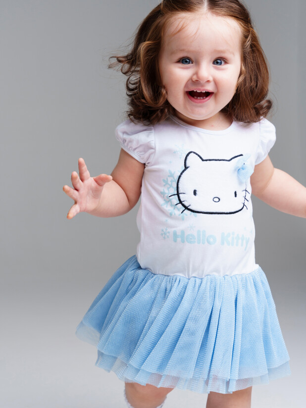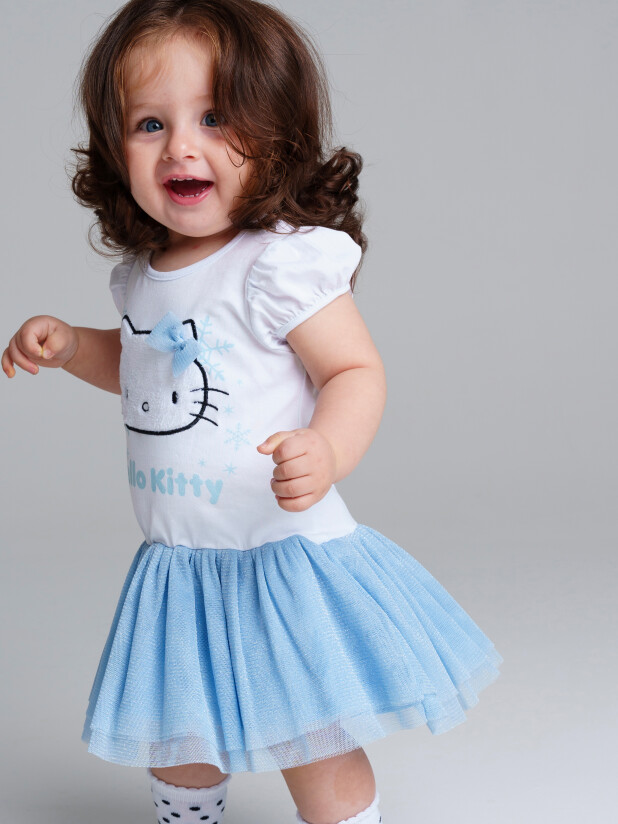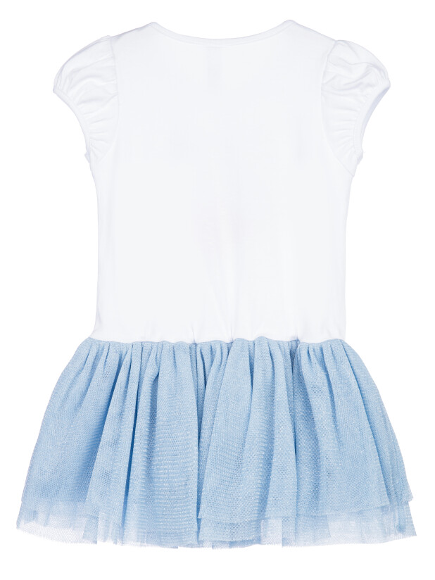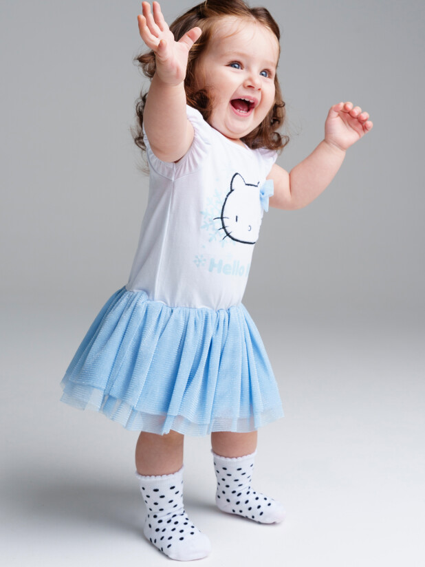 Платье трикотажное с юбкой из мягкой сетки. Верх платья из трикотажа с высоким содержанием хлопка 95%. Благодаря наличию 5% эластана в составе ткани изделие держит форму.