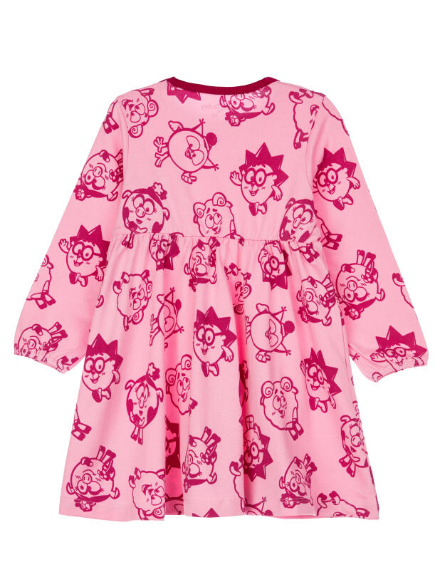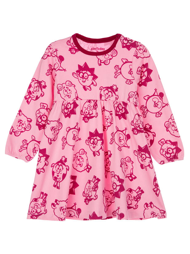 Трикотажное детское платье с принтом Смешарики для девочки от PlayToday — нежная и комфортная модель на каждый день. Выполнено из мягкого хлопка с добавлением эластана, платье хорошо тянется, не сковывает движений и сохраняет форму после стирки. Расклешённый силуэт и длинные рукава делают эту модель удобной как для дома, так и для прогулок, а забавный мультяшный принт поднимает настроение.
