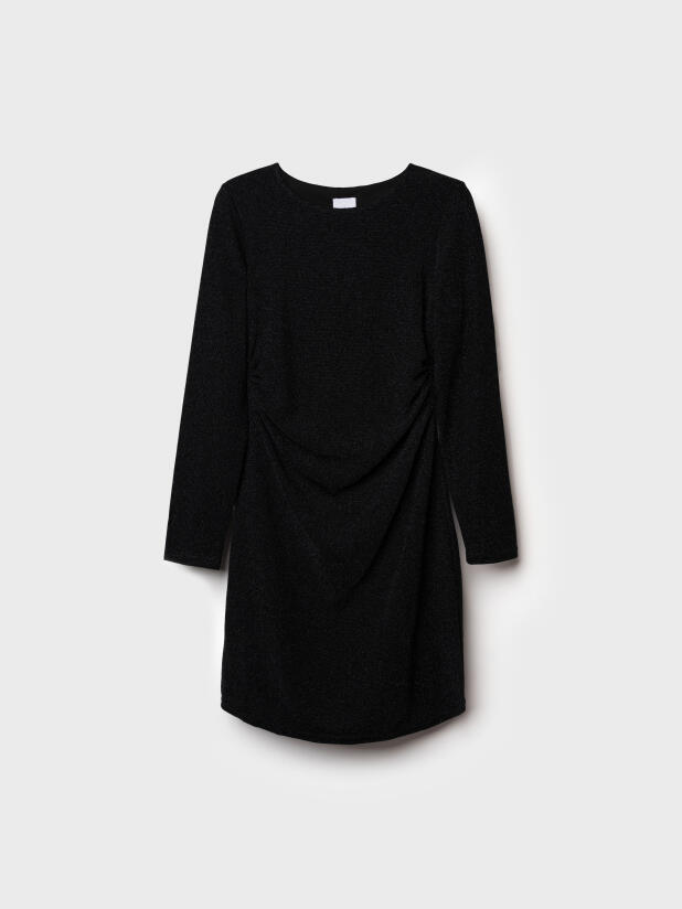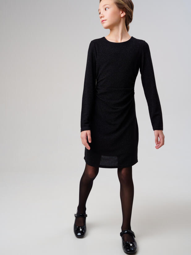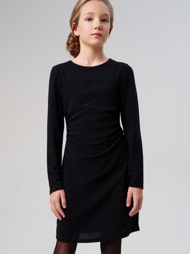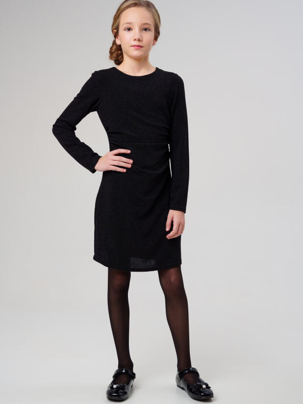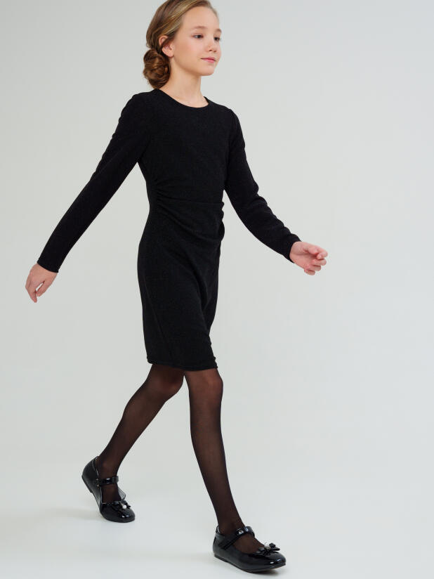О товаре Стильное трикотажное платье для девочки подростка от PlayToday — нарядная модель с люрексом. Преимущества модели: + платье трикотажное для девочки — удобно, модно, стильно + стильное блестящее платье футляр + сборки по бокам создают праздничный, запоминающийся образ + идеально для подростков: посадка, не сковывает движения Надевая его, вы создаете роскошный образ, идеально подходящий для для фотосессий и других особых случаев. Благодаря плотному теплому трикотажу с люрексом его можно носить осенью или зимой. Когда и как носить: Подходит для праздников, дней рождения, школьных новогодних мероприятий, фотосессий или просто как стильный наряд на выход. Также отлично смотрится в повседневной стилизации — трендовая уличная мода для подростков. Советы по стилю: Носи с кроссовками, челси, грубыми ботинками или балетками от PlayToday. Добавь объёмную джинсовку, косуху или удлинённую парку — и ты получишь трендовый и комфортный городской образ. Подходит для девочек подростков и школьниц от 8 лет. СОСТАВ 65% нейлон, 30% люрекс, 5% эластан Уход Ручная стирка. Максимальная температура стирки 30°С. Не отбеливать. Утюжить запрещено. Чистка запрещена. Не применять сушку в барабане. Горизонтальная сушка на плоскости в расправленном состоянии. Стирать с вещами такой же окраски. Бренд PlayToday АРТИКУЛ 42521003 Цвет Черный, Серый Возрастная категория Школьники, Подростки Пол Женский Год коллекции 2025 Страна бренда Германия Страна производства Китай Возраст 8 лет, 9 лет, 10 лет, 11 лет, 12 лет, 13 лет, 14 лет, 15 лет, 16 лет Маркировка Товары легкой промышленности и одежда Миниколлекция New Year