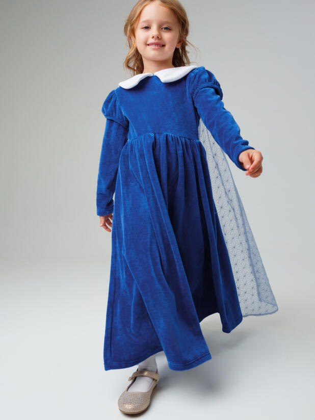 О товаре Платье детское нарядное из велюра для девочки от PlayToday — элегантная и комфортная модель в винтажном стиле. Мягкий материал с лёгким блеском создаёт праздничное настроение, а контрастный белый воротничок добавляет образу изысканности и очарования. Преимущества модели: + плотный велюр премиум-качества — тёплый, мягкий и приятный на ощупь + контрастный воротник из белой ткани придаёт наряду выразительный акцент + рукава с лёгким объёмом на плечах — модная деталь, создающая женственный силуэт + собранная юбка — красиво драпируется и создаёт лёгкий объём + материал устойчив к деформации и не теряет цвет после стирок Когда и как носить: Идеально подходит для праздников, новогодних утренников, походов в театр или фотосессий. Благодаря мягкой велюровой ткани платье остаётся удобным даже при активных движениях — ребёнку в нём тепло и комфортно. Советы по стилю: Сочетайте с плотными колготками и туфельками или балетками от PlayToday. Для завершения образа можно добавить ободок, бантик или бархатную ленту в тон платью. Размерный ряд: 98–122 см. Платье детское велюровое PlayToday — уютная классика с ноткой волшебства для самых красивых зимних праздников. СОСТАВ 75% хлопок, 25% полиэстер Уход Максимальная температура стирки 30°С. Мягкий режим. Не отбеливать. Утюжить при температуре не более 110°С. Чистка запрещена. Горизонтальная сушка на плоскости в расправленном состоянии. Стирать вывернутым наизнанку. Не утюжить отделку. Предварительная стирка обязательна. Утюжить с изнаночной стороны. Бренд PlayToday АРТИКУЛ 42522016 Цвет Синий, Белый Возрастная категория Дошкольники Пол Женский Год коллекции 2025 Страна бренда Германия Страна производства Китай Возраст 3 года, 4 года, 5 лет, 6 лет, 7 лет Маркировка Товары легкой промышленности и одежда Миниколлекция New Year