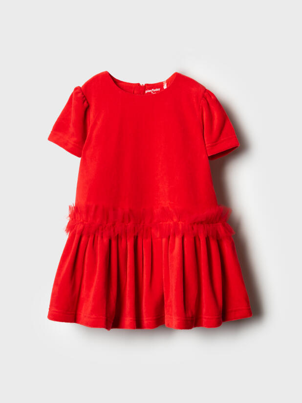 О товаре Велюровое нарядное платье для девочки от PlayToday — уютная и нарядная модель, созданная специально для самых маленьких модниц. Мягкий велюр благородного красного оттенка придаёт образу праздничность, а оборка по линии талии добавляет игривости и объёма. Преимущества модели: + плотный велюр премиум-качества — мягкий, приятный к телу и сохраняет форму после стирки + аккуратная оборка по талии — эффектный декоративный акцент + короткие рукава с лёгким объёмом — женственный силуэт + подкладка из хлопкового поплина — комфорт и воздухопроницаемость + материал устойчив к износу и не теряет насыщенности цвета Когда и как носить: Идеально подойдёт для праздников, семейных торжеств, утренников и фотосессий. Благодаря продуманному крою и натуральной подкладке платье можно носить весь день без дискомфорта. Советы по стилю: Сочетайте с белыми колготками и балетками, а в прохладное время добавьте жакет или кардиган из коллекции PlayToday. Размерный ряд: 80–92 см. Красное велюровое платье PlayToday — уют, комфорт и праздничное настроение для самых тёплых моментов детства. СОСТАВ Верхняя ткань: 75% хлопок, 25% полиэстер Подкладка: 60% хлопок, 40% полиэстер Уход Максимальная температура стирки 30°С. Мягкий режим. Не отбеливать. Утюжить при температуре не более 110°С. Чистка запрещена. Не применять сушку в барабане. Стирать с вещами такой же окраски. Стирать вывернутым наизнанку. Не утюжить отделку. Предварительная стирка обязательна. Утюжить с изнаночной стороны. Бренд PlayToday АРТИКУЛ 42523003 Цвет Красный Возрастная категория Малыши Пол Женский Год коллекции 2025 Страна бренда Германия Страна производства Китай Возраст 12 месяцев, 18 месяцев, 24 месяца, 13 месяцев, 14 месяцев, 15 месяцев, 16 месяцев Маркировка Товары легкой промышленности и одежда Миниколлекция New Year