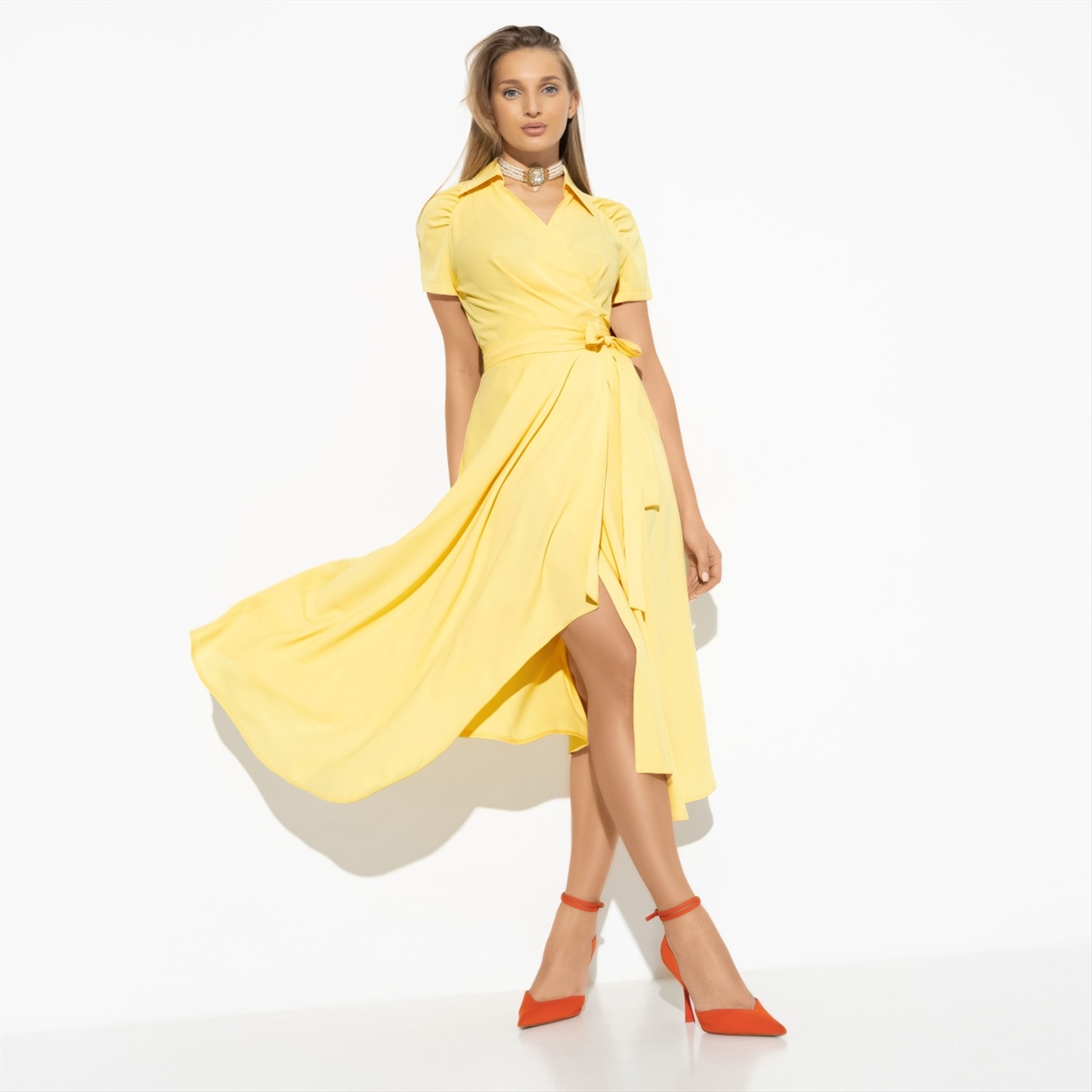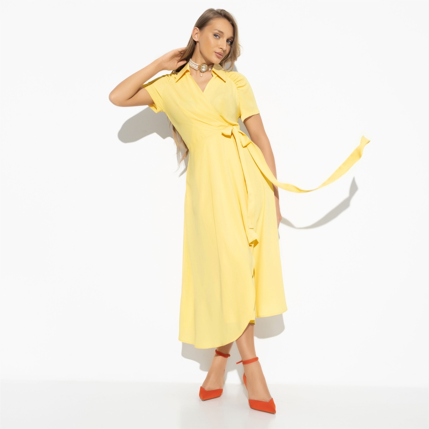 Сливочный пломбир, ванильный леденец или крем-брюле? Для тех, кто отказался от десертов в пользу фигуры, у нас есть конфетка – платье на запах с потайными карманами в нежном лимонном цвете. Ощущать себя красивой – вкусно!