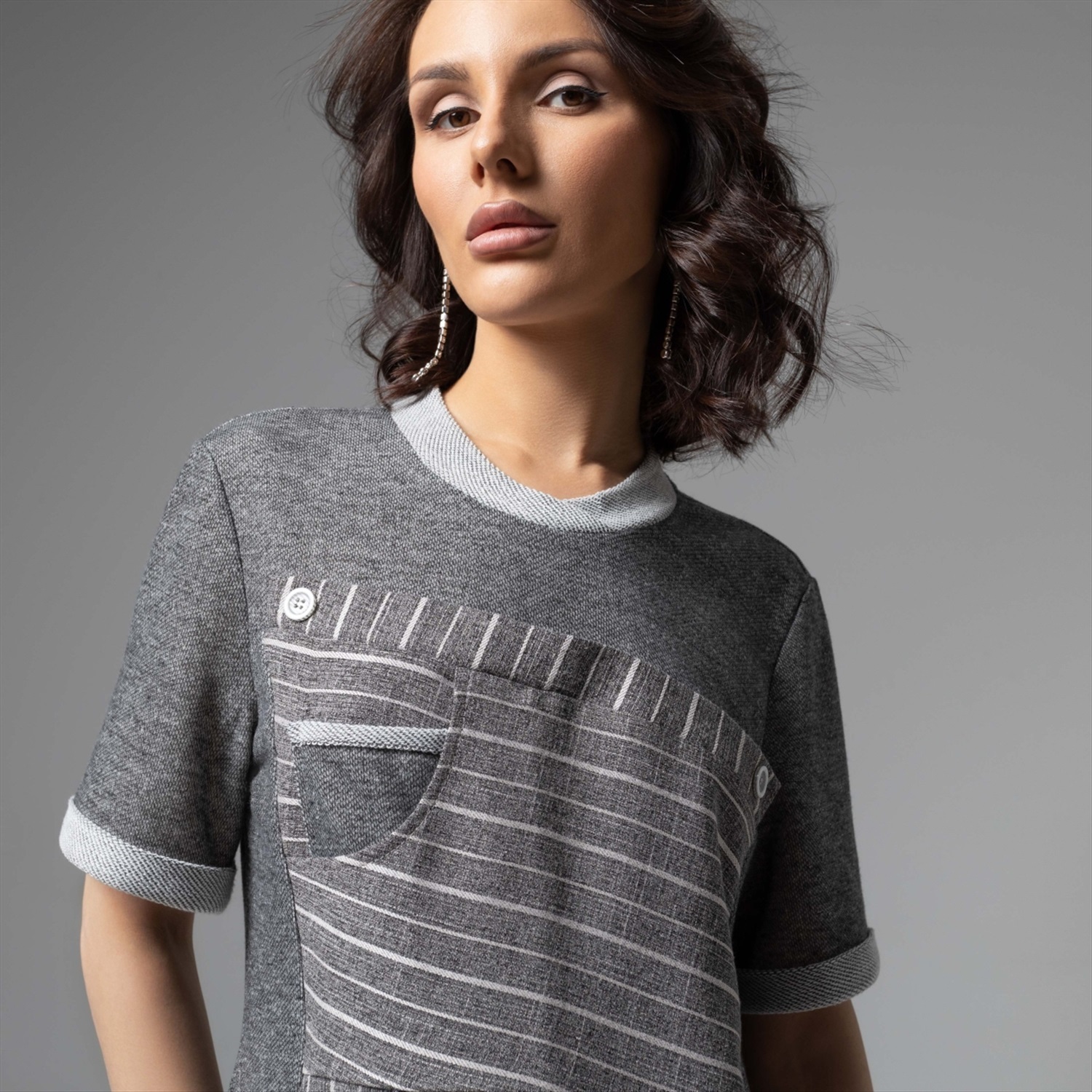 Состав: 40% п/э, 30% хлопок, 25% вискоза, 5% спандекс Основной цвет ткани: Серый Отрезная талия: Есть Подклад: Есть Резинка по талии: Есть Это платье – визуальный эквивалент уверенного тона. Премиальная ткань, филигранный пошив и изысканный серый оттенок создают образ, которому не нужны лишние слова. Платье прямого силуэта в длине миди. Высокое качество материала и тщательно выверенные лекала обеспечивают комфортную и красивую посадку. Есть карман по передней части изделия. Комментарии к товару