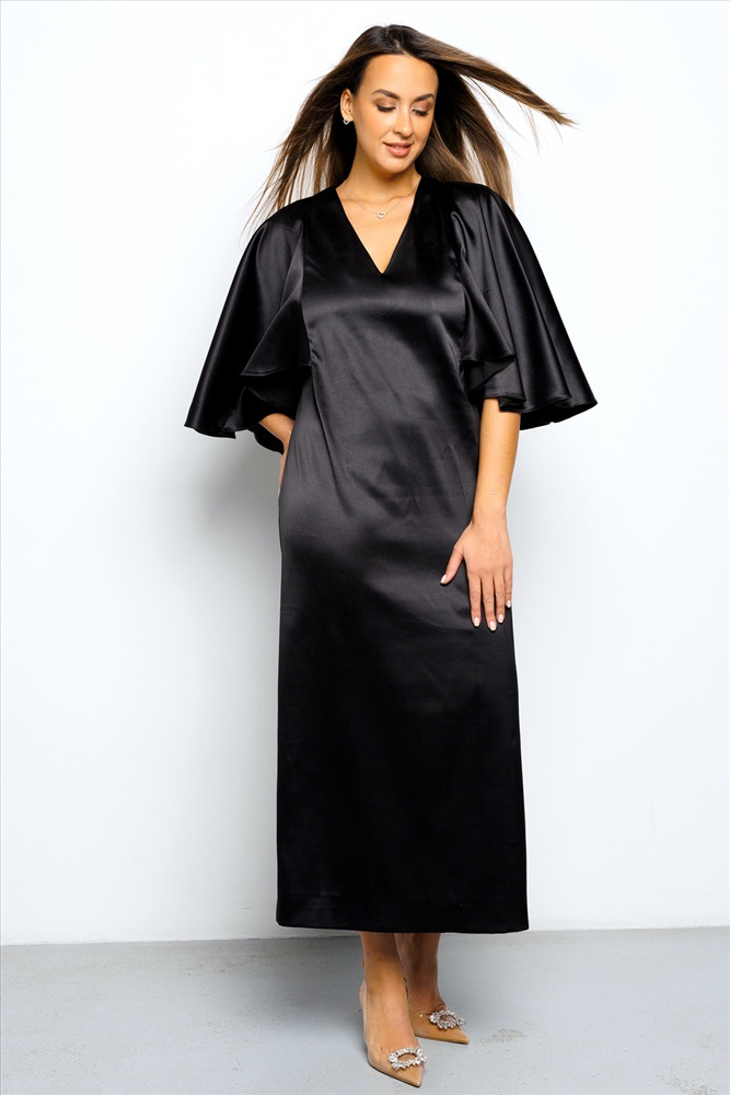 Платье праздничное длинное с воланами от бренда Raposa это идеальный выбор для тех, кто ищет элегантное и стильное праздничное платье для особых случаев. Это винтажное шелковое платье в стиле old money выполнено из черного атласа премиум качества, что придает ему особенную гладкость и блеск. Платье туника 58 размера обеспечивает комфорт и удобство при носке.