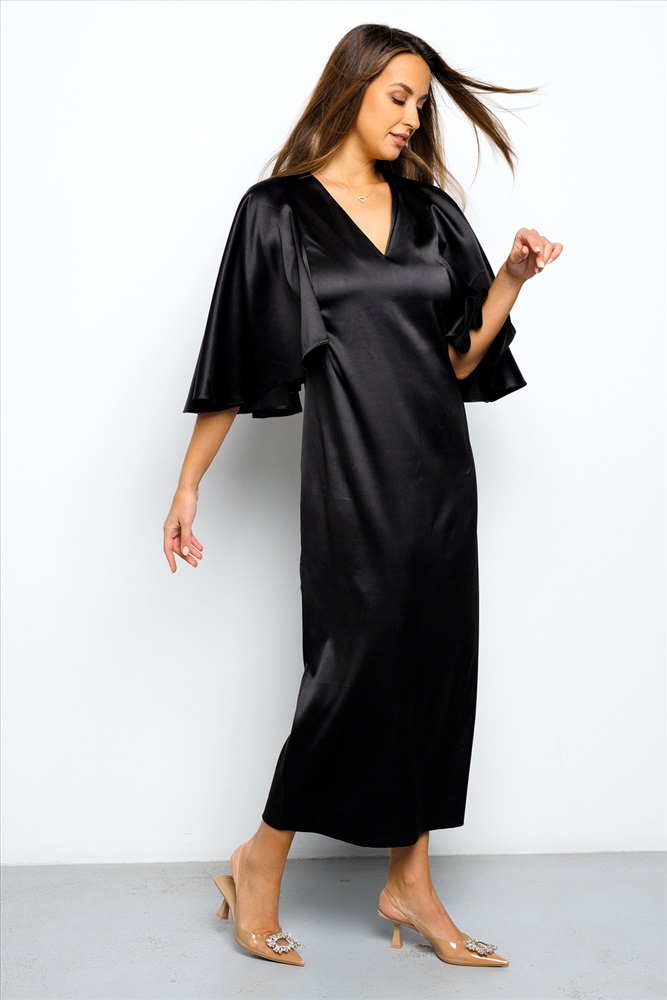 Декольте подчеркнет шею, длина макси, рукава клеш, разрез и рюши добавляют платью женственности и изысканности. Свободный крой и отсутствие подкладки делают роскошный коктейльный наряд богини в греческом стиле идеальным для теплых вечеров или на осень. Платье летучая мышь предназначено для высоких женщин и имеет тип ростовки, который подчеркнет вашу грацию. Идеально садится на большую грудь и широкие бедра.