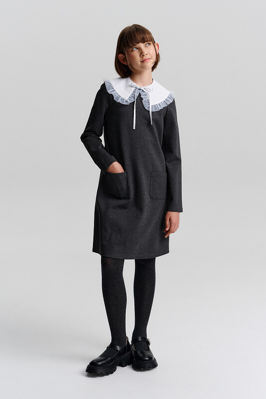 Идеальное платье для школы и не только! Стильное платье А-силуэта с длинными рукавами — настоящая находка для гардероба школьницы. Удобный крой не сковывает движений, а продуманные детали делают образ аккуратным и практичным.