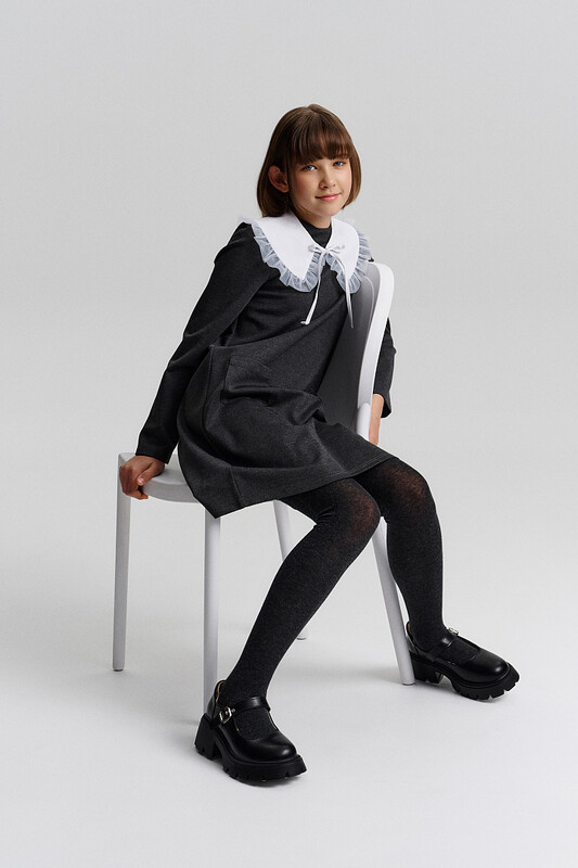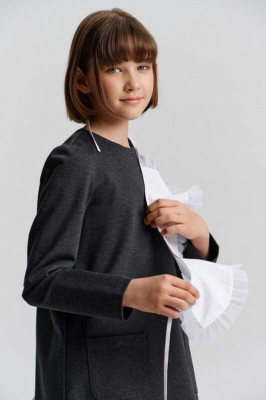 Платье выполнено из мягкого хлопкового трикотажа с добавлением полиэстера: оно дышит, держит форму, не мнётся и легко стирается — что особенно важно для школьной формы.