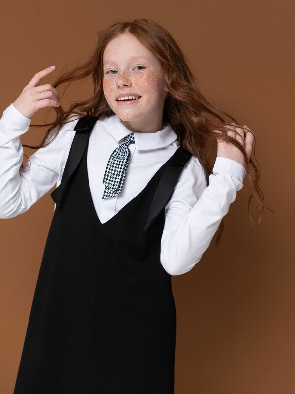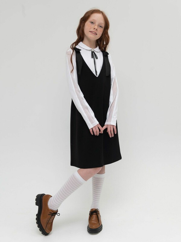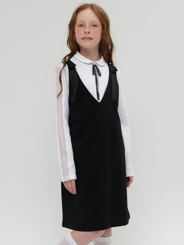 Сарафан для девочки из мягкого трикотажа универсальная вещь для школы. Свободный силуэт выгодно смотрится на любой фигуре и не стесняет движения.