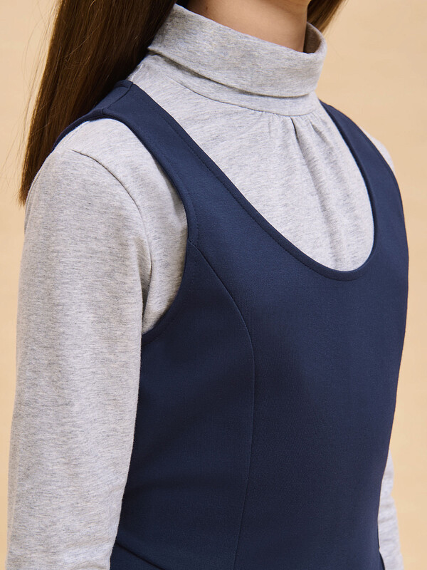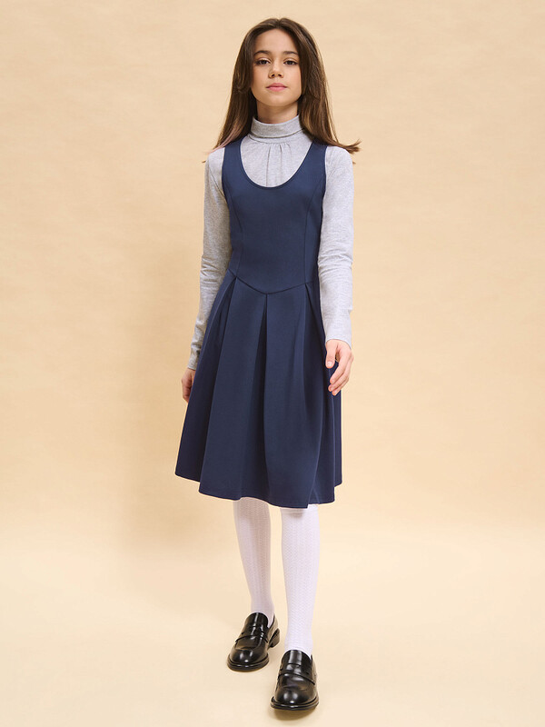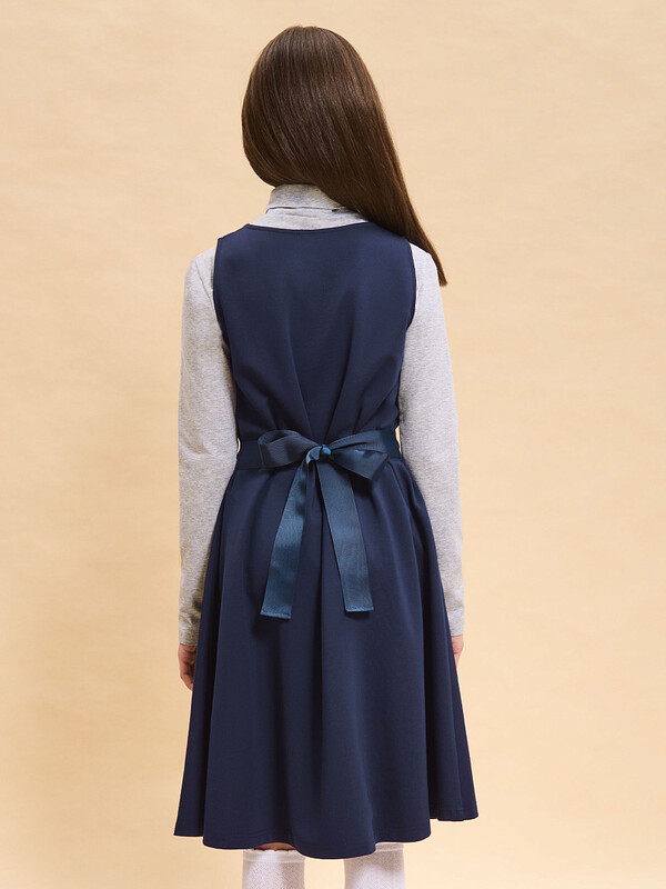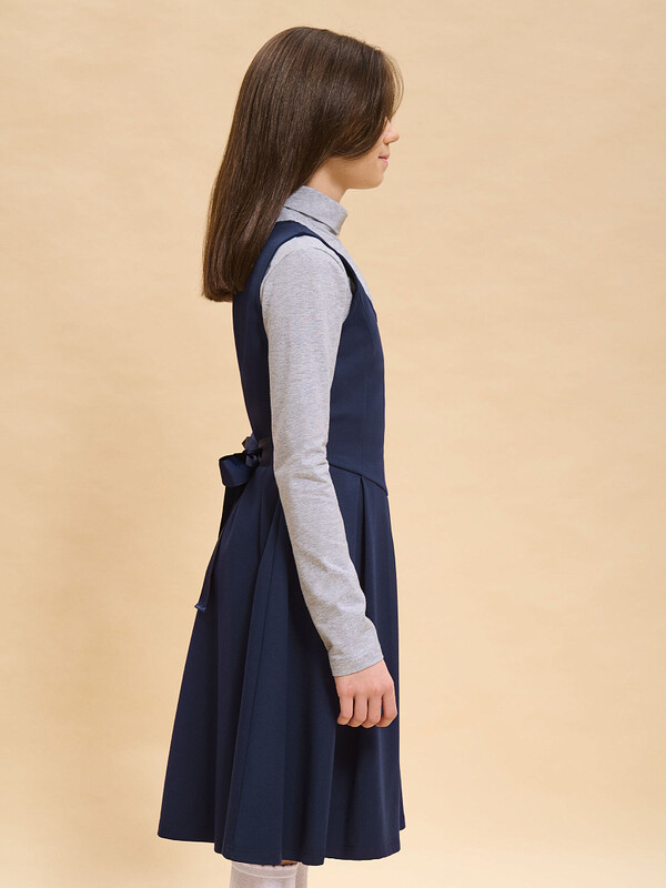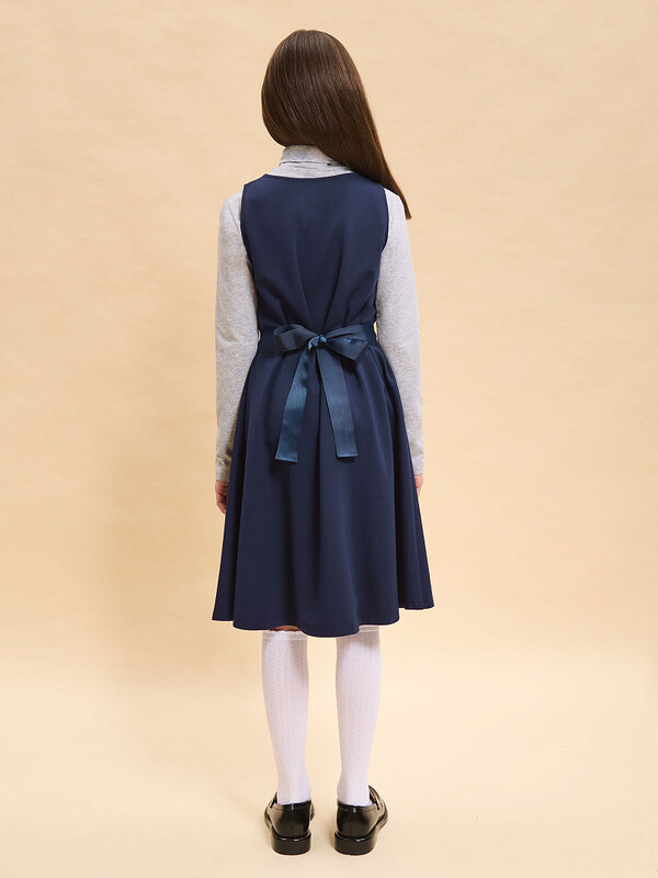 Школьный сарафан для маленьких принцесс. Изделие с округлым вырезом без застежки легко надевать и снимать, что так ценят самостоятельные леди. Завязка на бант из репсовой ленты сзади позволяет регулировать ширину и выбирать, что надеть под платье плотную водолазку или легкую блузу для торжественных случаев. Универсальные цвета не требуют частой стирки, а трикотаж на основе вискозы, обеспечит долгую практичную носку и простоту ухода. Состав: 60%вискоза 35%полиамид 5%эластан Комментарии к товару