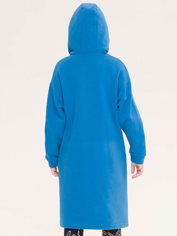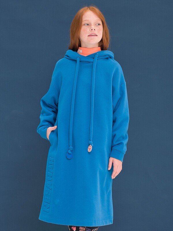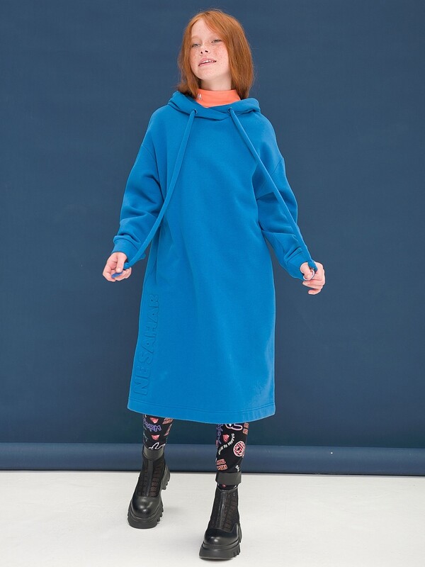 Платье с капюшоном для девочки оверсайз. Платье толстовка на девочку с длинным рукавом, свободного прямого кроя, удлиненное ниже колена, с разрезиками внизу. Базовый вариант детского гардероба для осени и зимы. Для современных девочек комфортная и универсальная свободная детская одежда вышла на первый план. Просторное теплое детское спортивное платье для подростка не сковывает движений, в нем удобно бегать, прыгать при этом выглядеть по-девичьи. Утепленное платье создано для активной жизни ребенка. Зимнее платье идеальный вариант для детей для повседневной носки на каждый день, подойдет на прохладную погоду, в нем можно много гулять, а от ветра защитит капюшон.